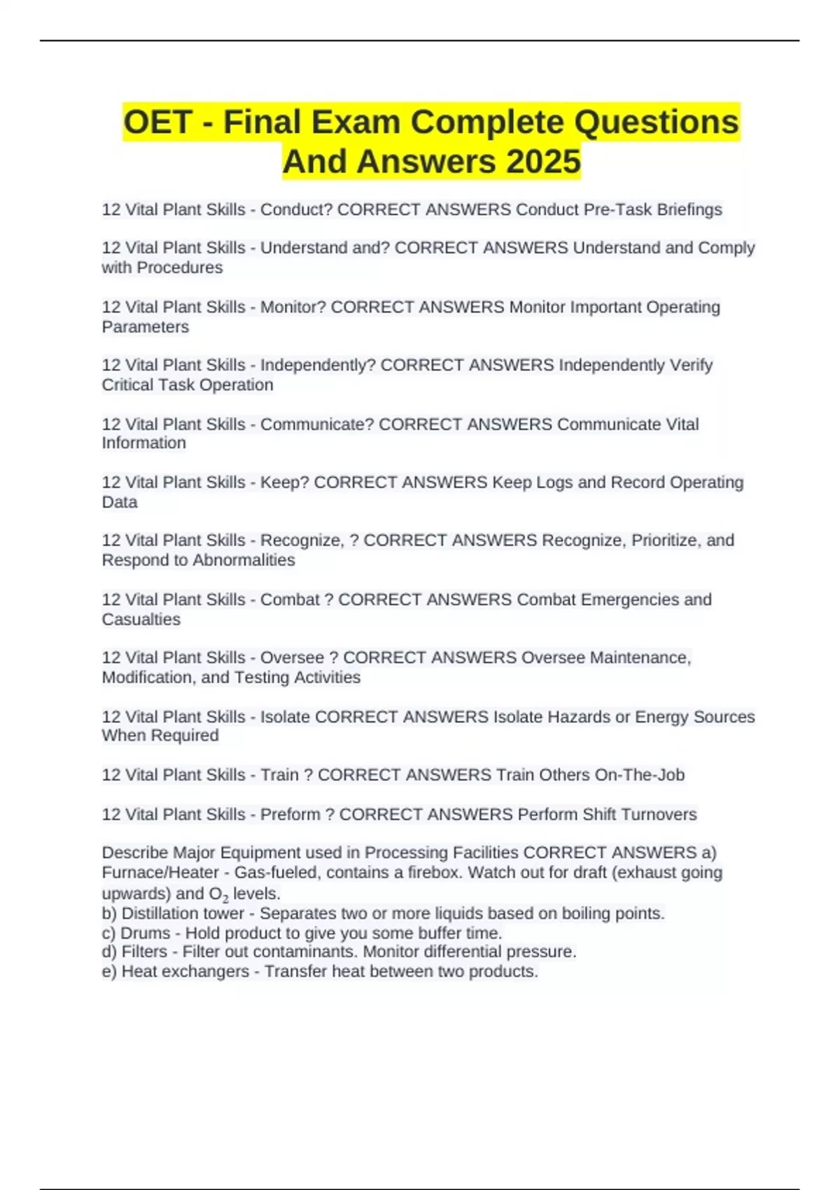 OET - Final Exam Complete Questions