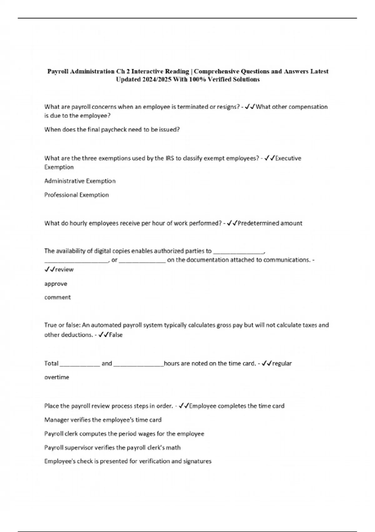 Payroll Administration Ch 2 Interactive Reading | Comprehensive Questions and Answers