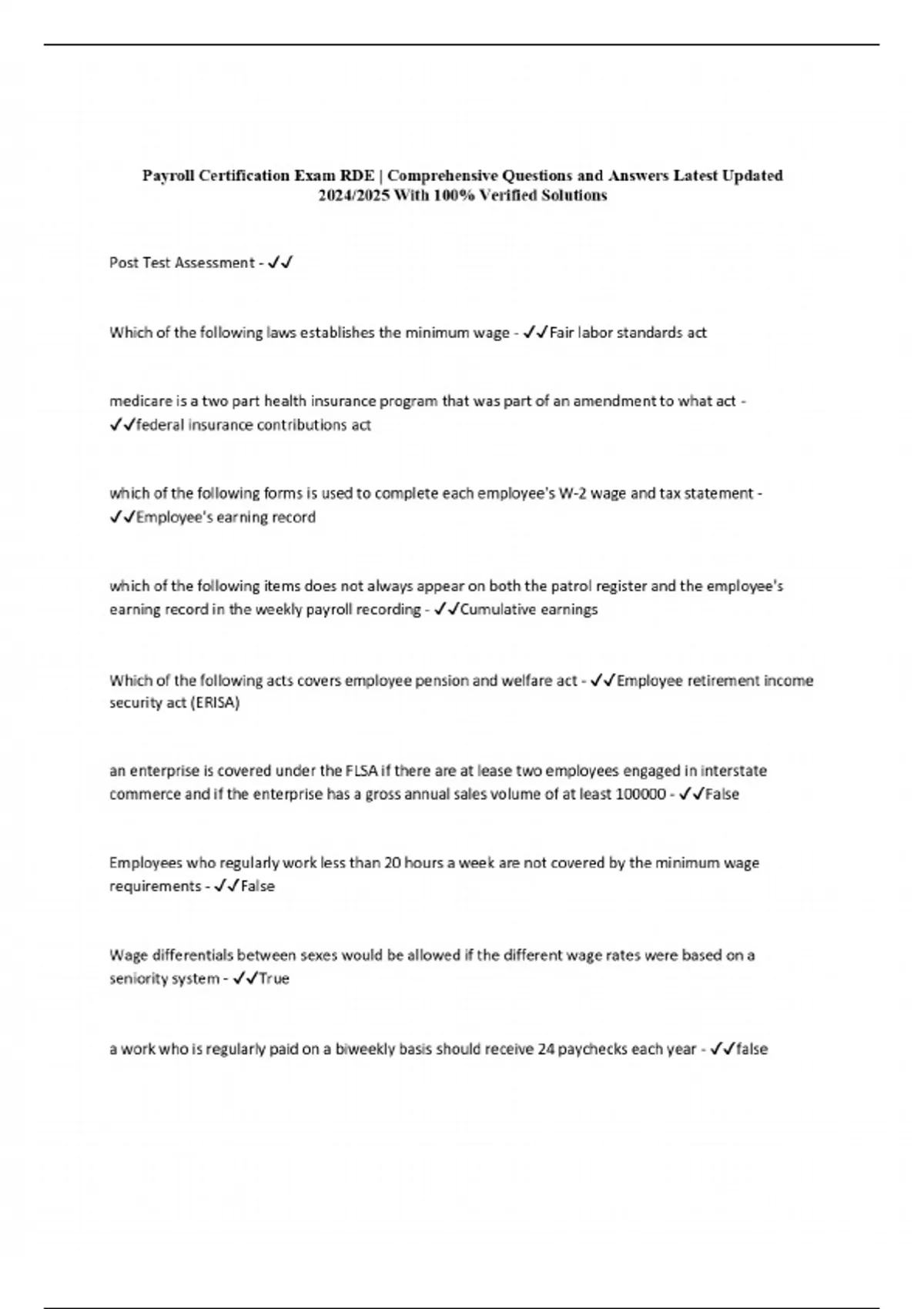 Payroll Certification Exam RDE | Comprehensive Questions and Answers