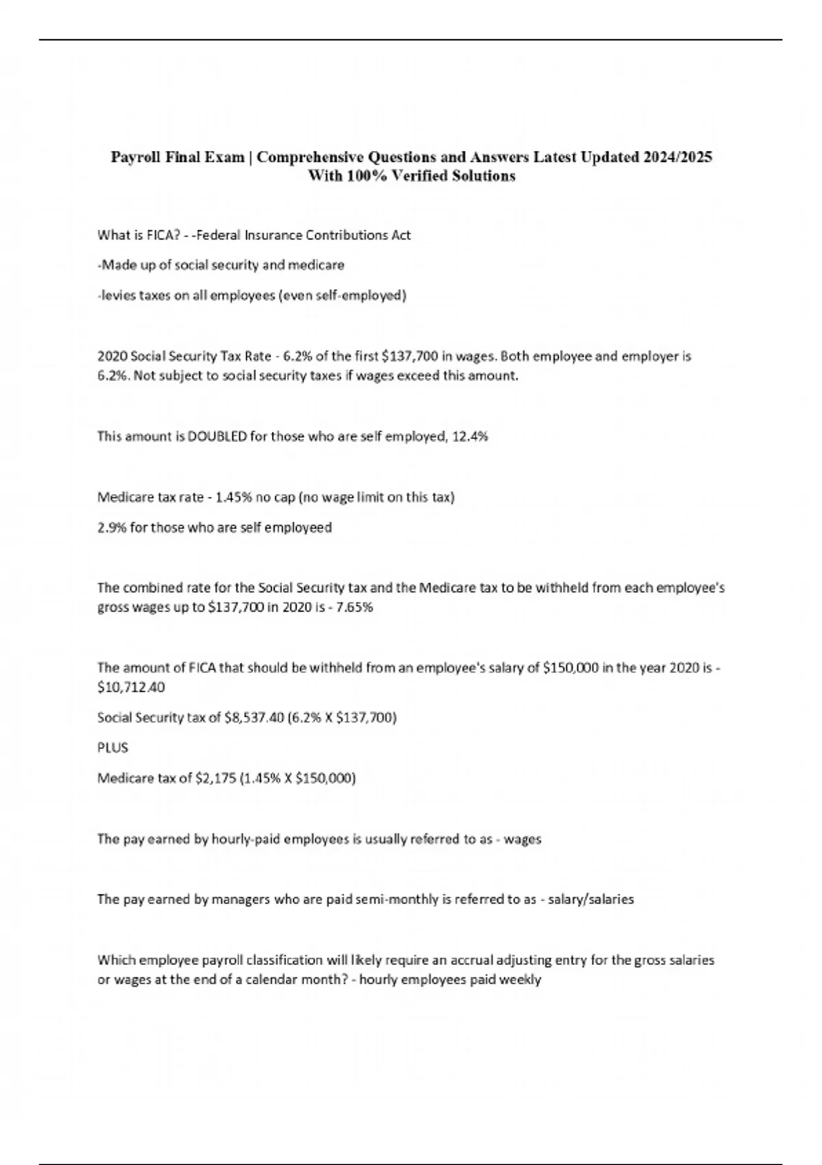 Payroll Final Exam | Comprehensive Questions and Answers