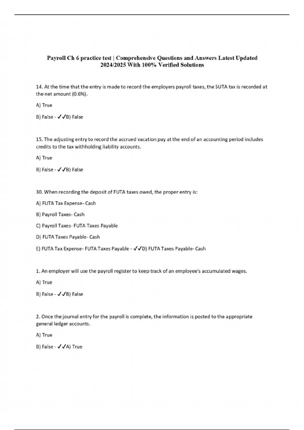 Payroll Ch 6 practice test | Comprehensive Questions and Answers