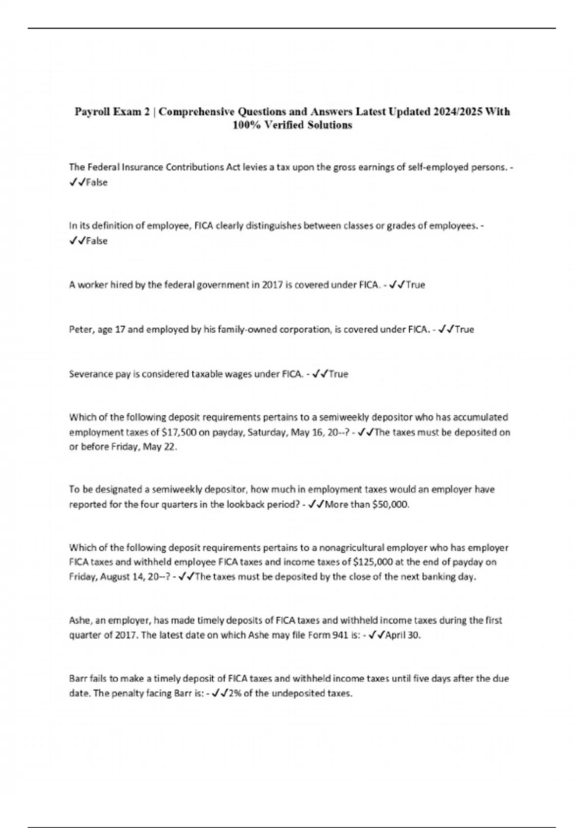 Payroll Exam 2 | Comprehensive Questions and Answers