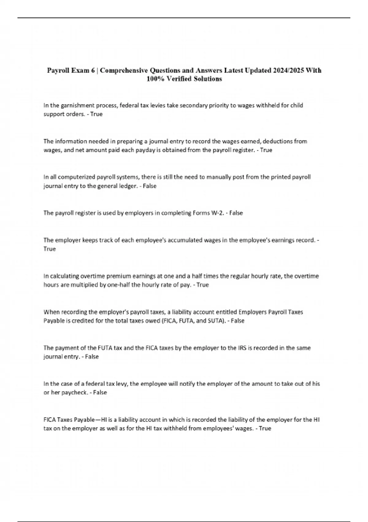 Payroll Exam 6 | Comprehensive Questions and Answers