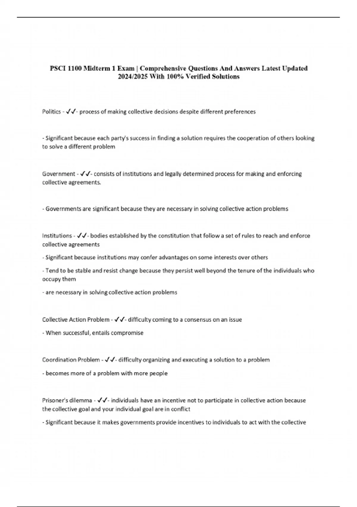 PSCI 1100 Midterm 1 Exam | Comprehensive Questions And Answers