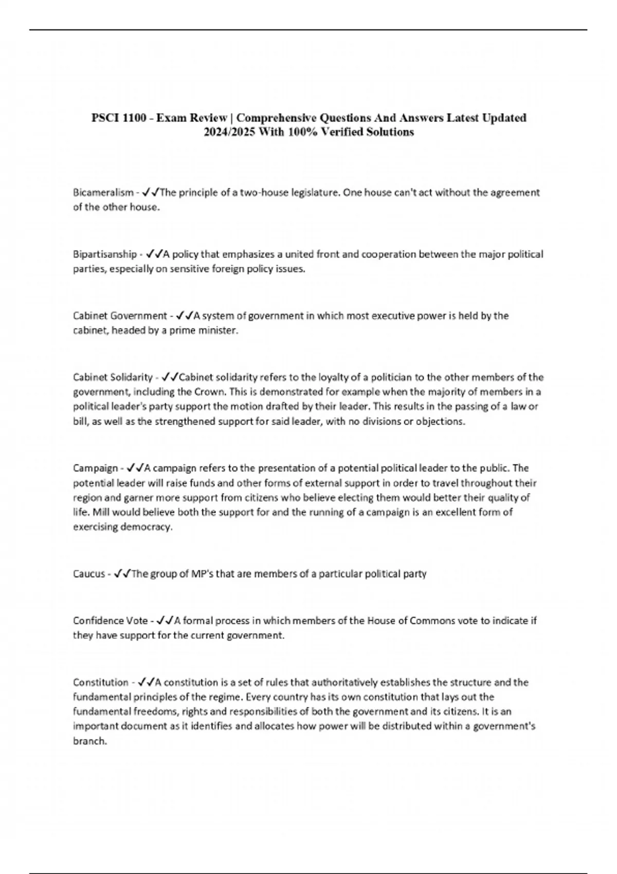 PSCI 1100 - Exam Review | Comprehensive Questions And Answers