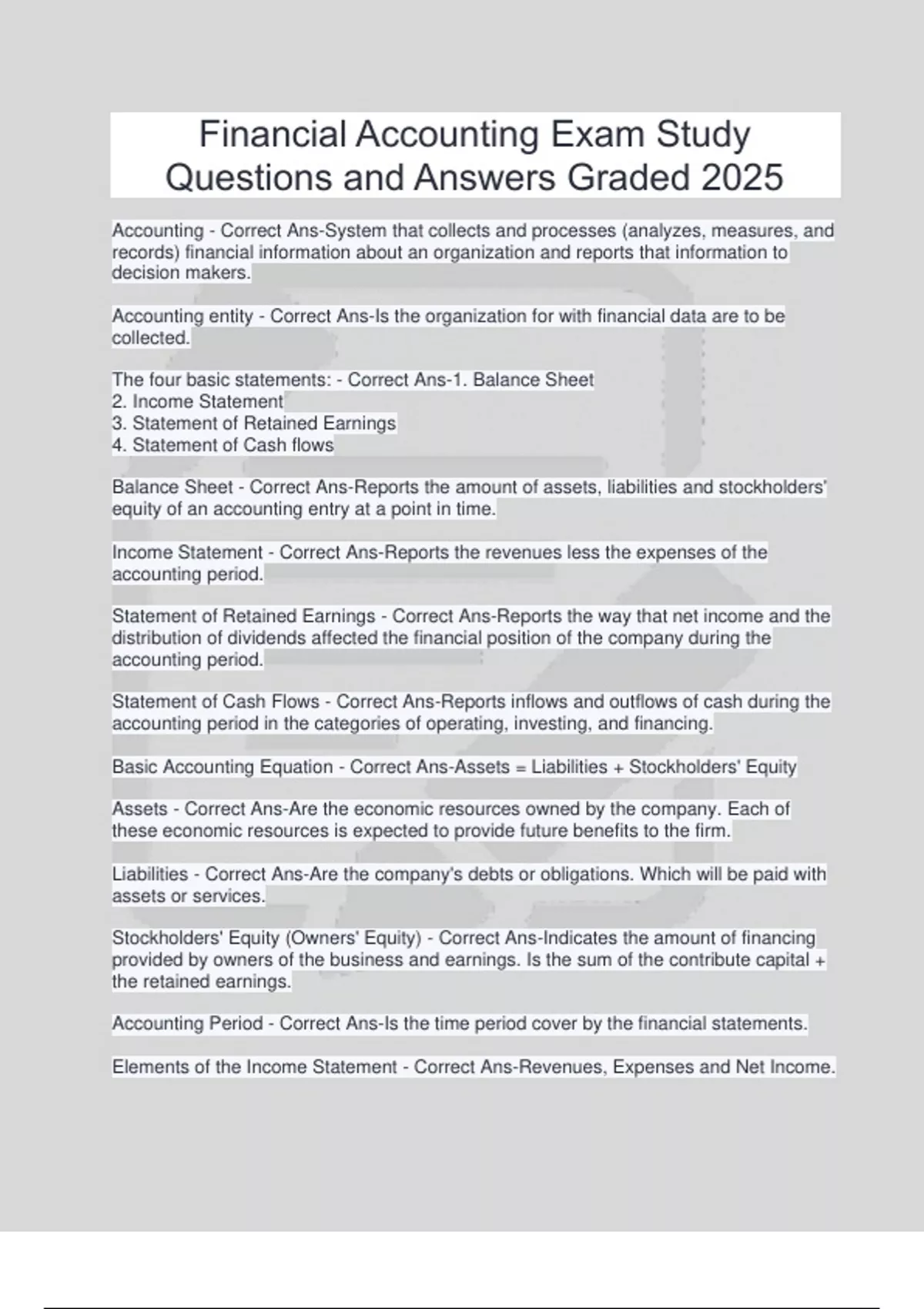 Assets - Correct Ans-Are the economic resources owned by the company. Each of