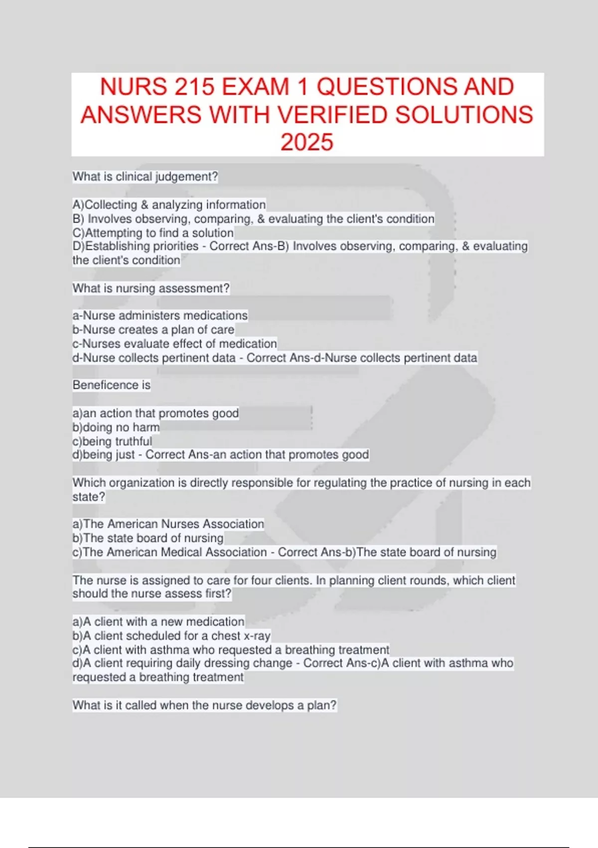 d)Implement nursing interventions - Correct Ans-b)Assess the client