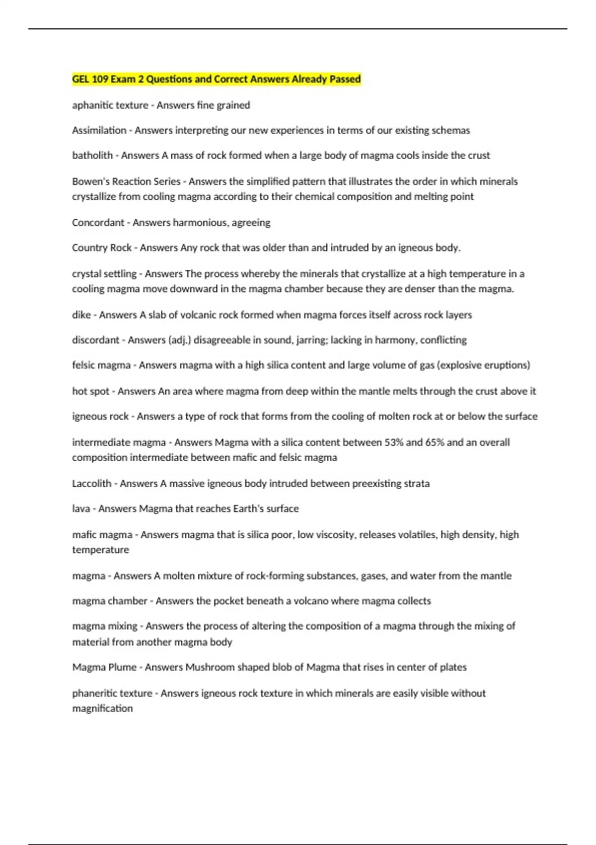 igneous rock - Answers a type of rock that forms from the cooling of molten rock at or below the surface