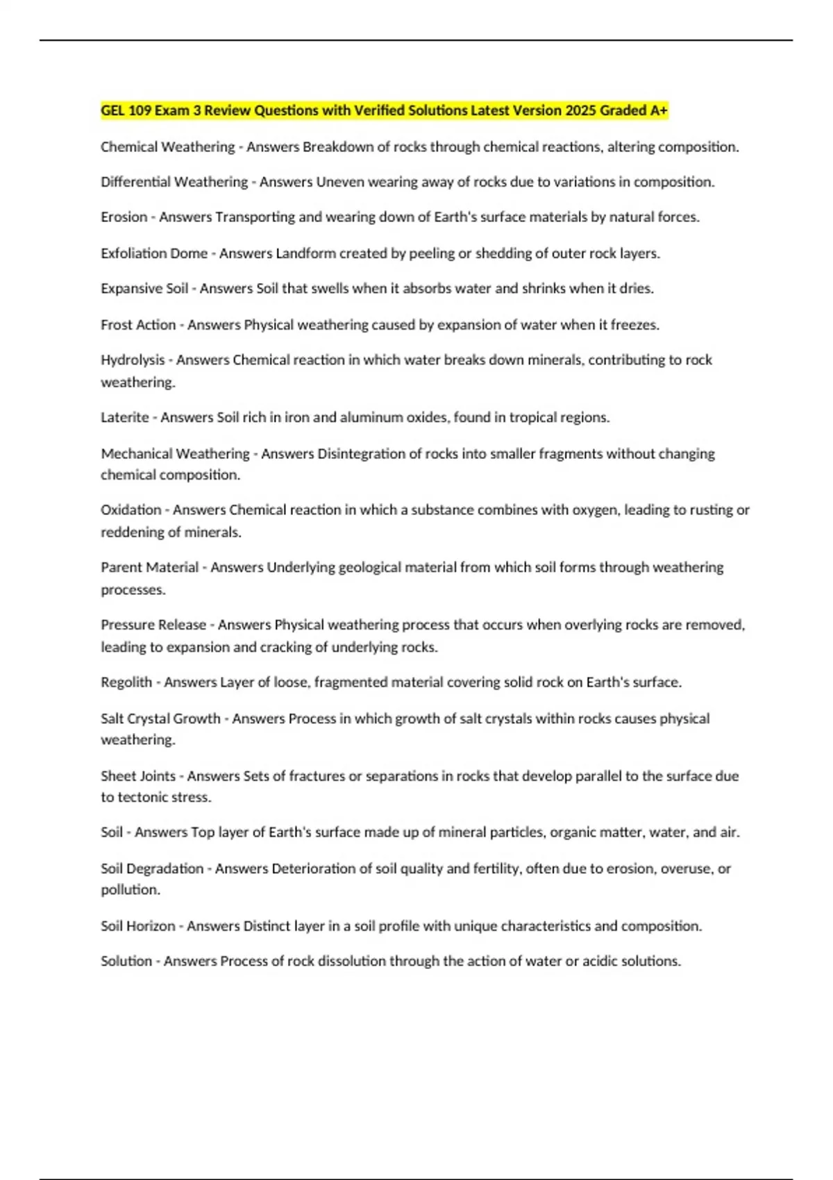 Chemical Weathering - Answers Breakdown of rocks through chemical reactions, altering composition.