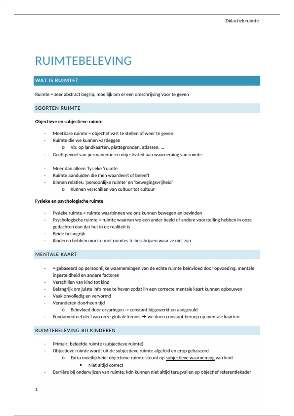 - Primair: beleefde ruimte (subjectieve ruimte)