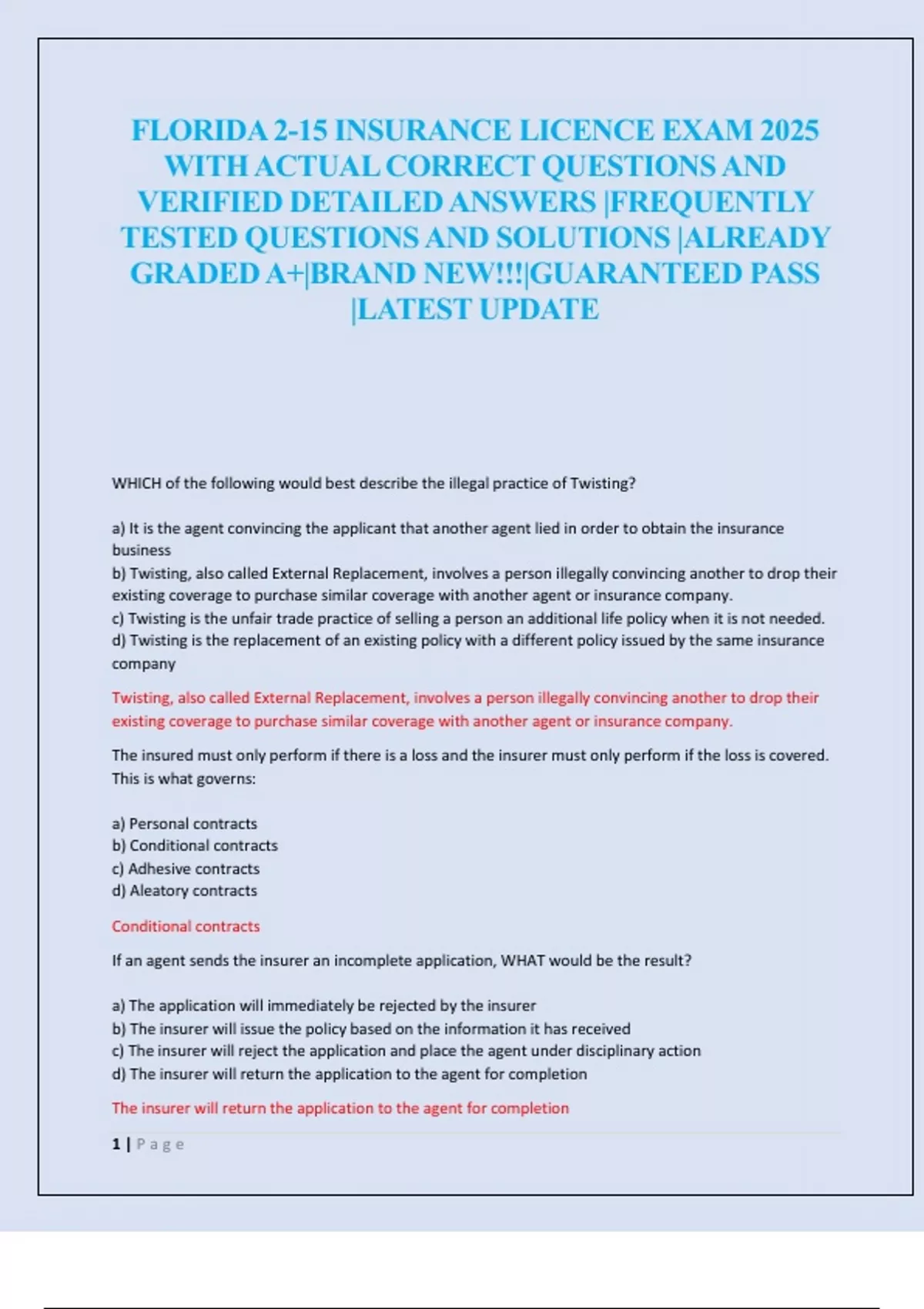 FLORIDA 2-15 INSURANCE LICENCE EXAM 2025 WITH ACTUAL CORRECT QUESTIONS AND VERIFIED DETAILED ANSWERS |FREQUENTLY TESTED QUESTIONS AND SOLUTIONS |ALREADY GRADED A+|BRAND NEW!!!|GUARANTEED PASS |LATEST UPDATE