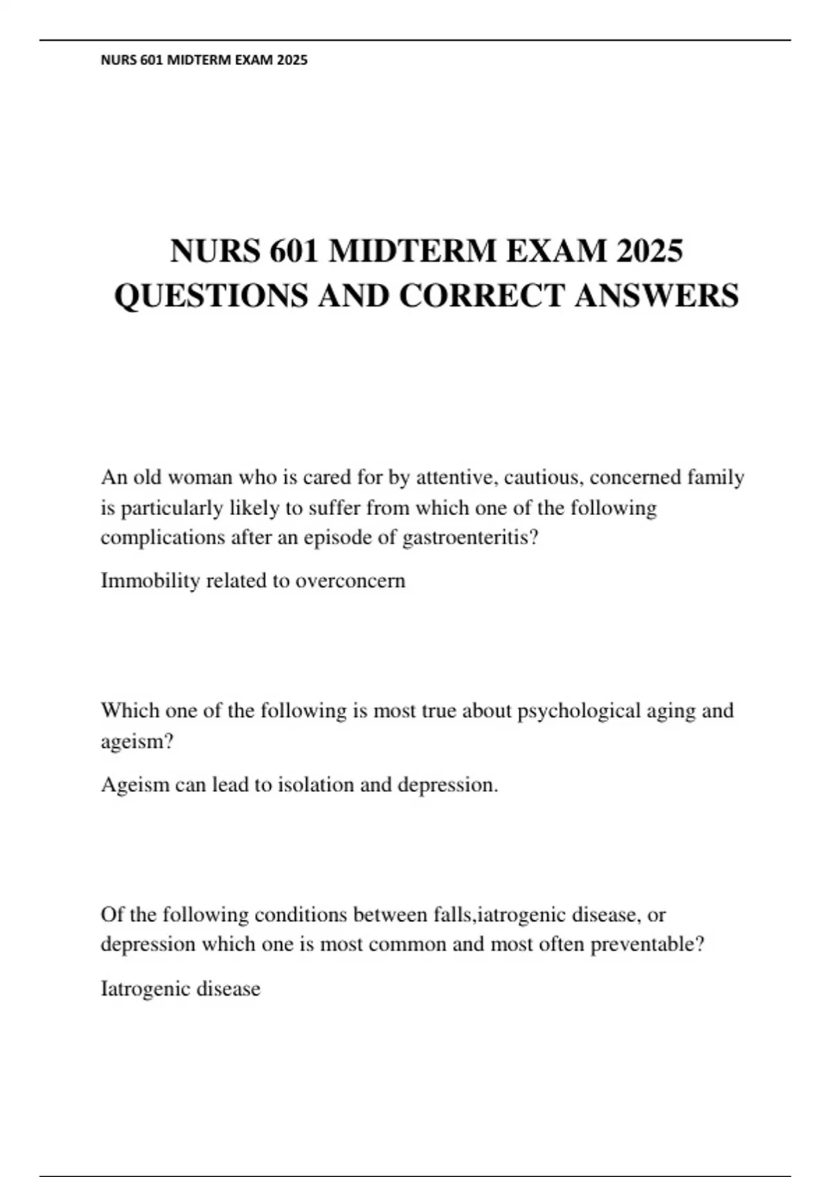 NURS 601 MIDTERM EXAM 2025 QUESTIONS AND CORRECT ANSWERS