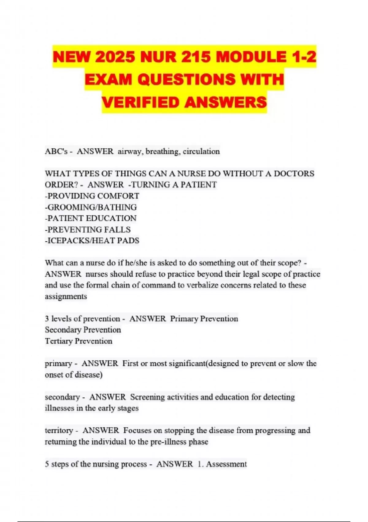 NEW 2025 NUR 215 MODULE 1-2 EXAM QUESTIONS WITH VERIFIED ANSWERS