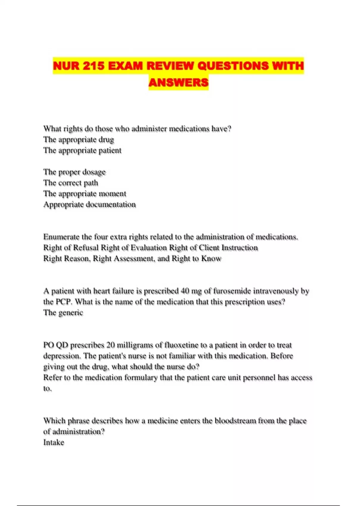 NUR 215 EXAM REVIEW QUESTIONS WITH
