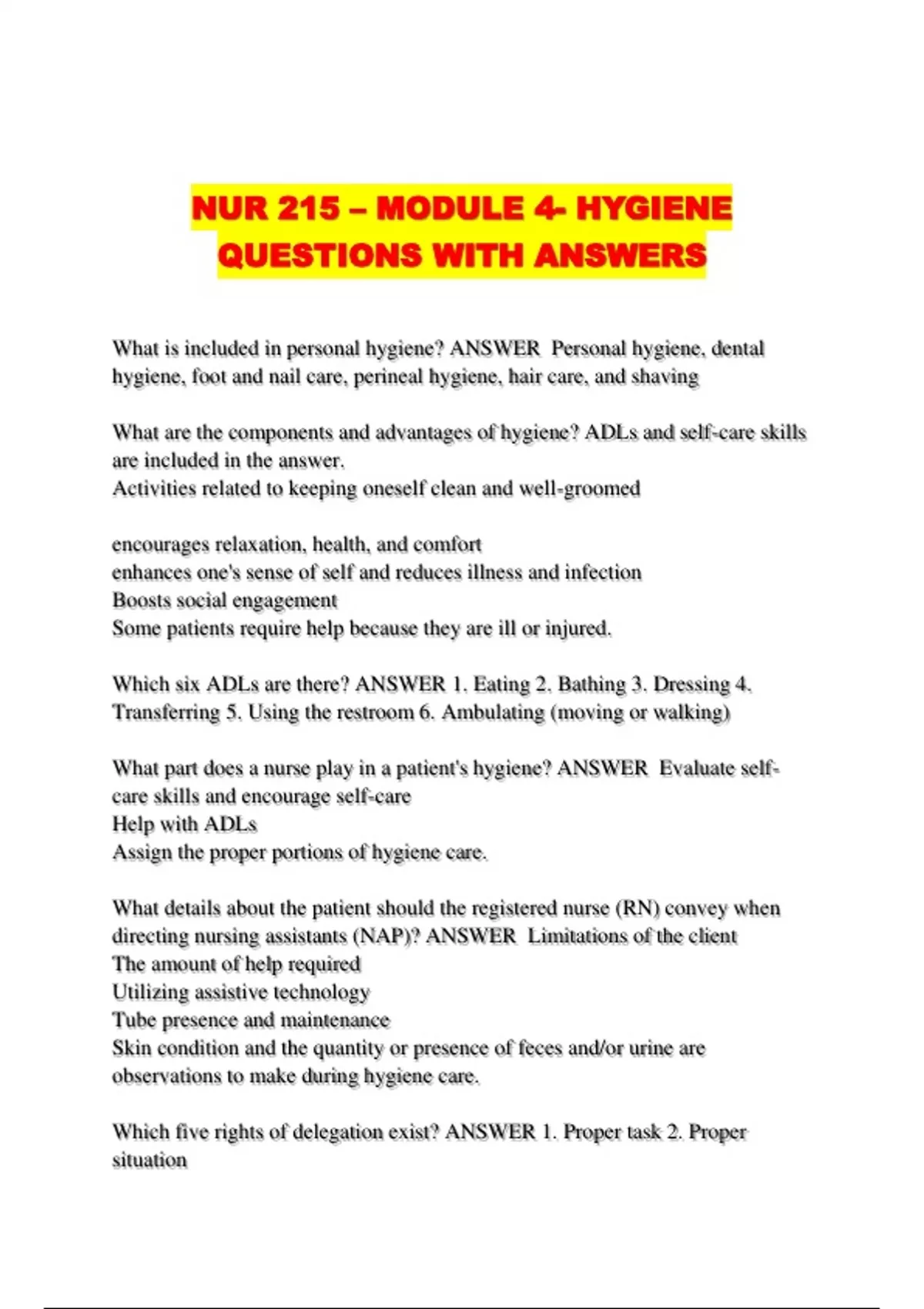 NUR 215 – MODULE 4- HYGIENE