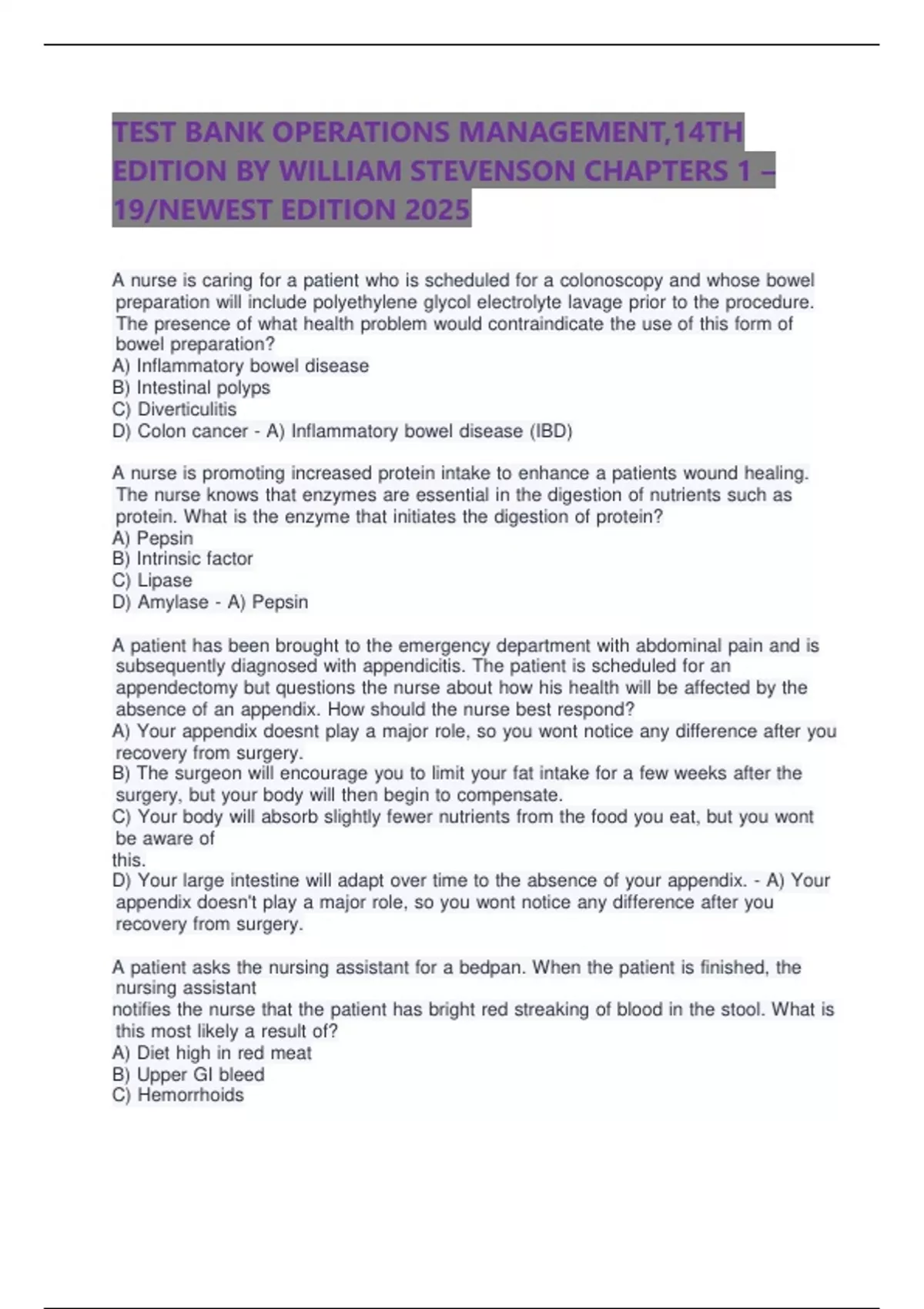 TEST BANK for Operations Management, 14th Edition by William J. Stevenson, Verified Chapters 1 - 19, Complete Newest Version