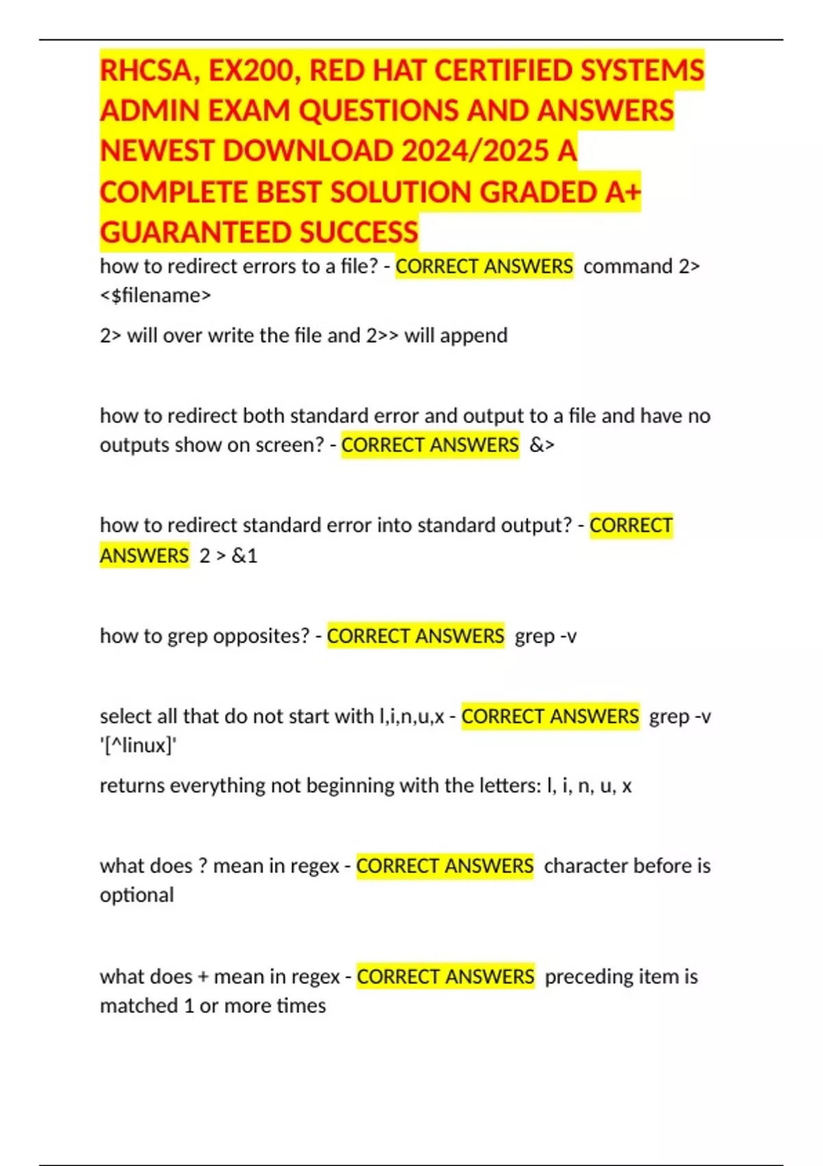how to redirect errors to a file? - CORRECT ANSWERS command 2>