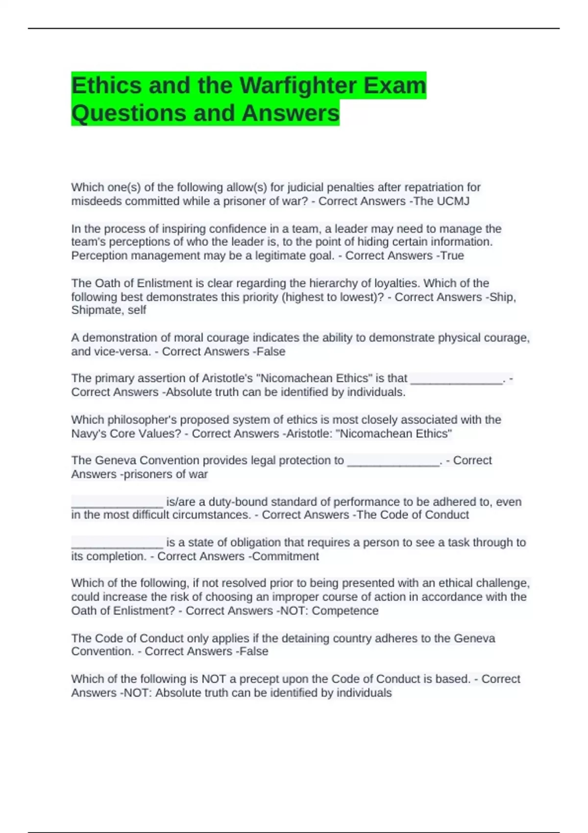 Navy's Core Values? - Correct Answers -Aristotle: "Nicomachean Ethics"