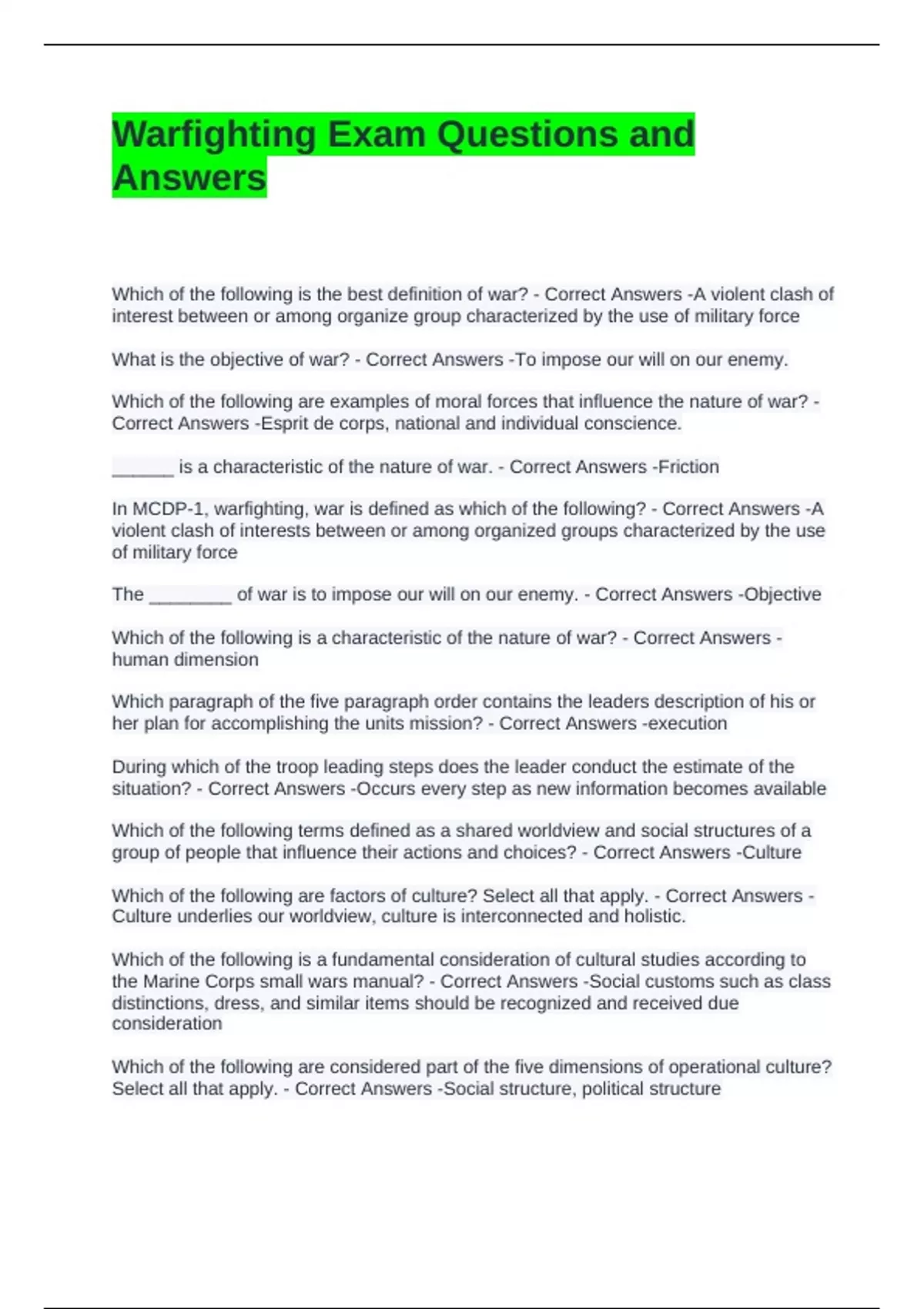 Warfighting Exam Questions and Answers