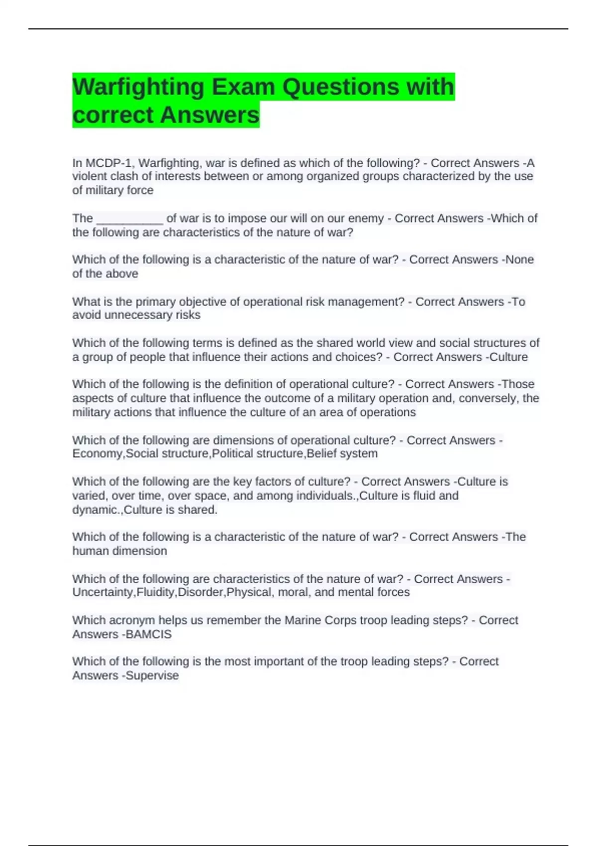 Which of the following is a characteristic of the nature of war? - Correct Answers -None
