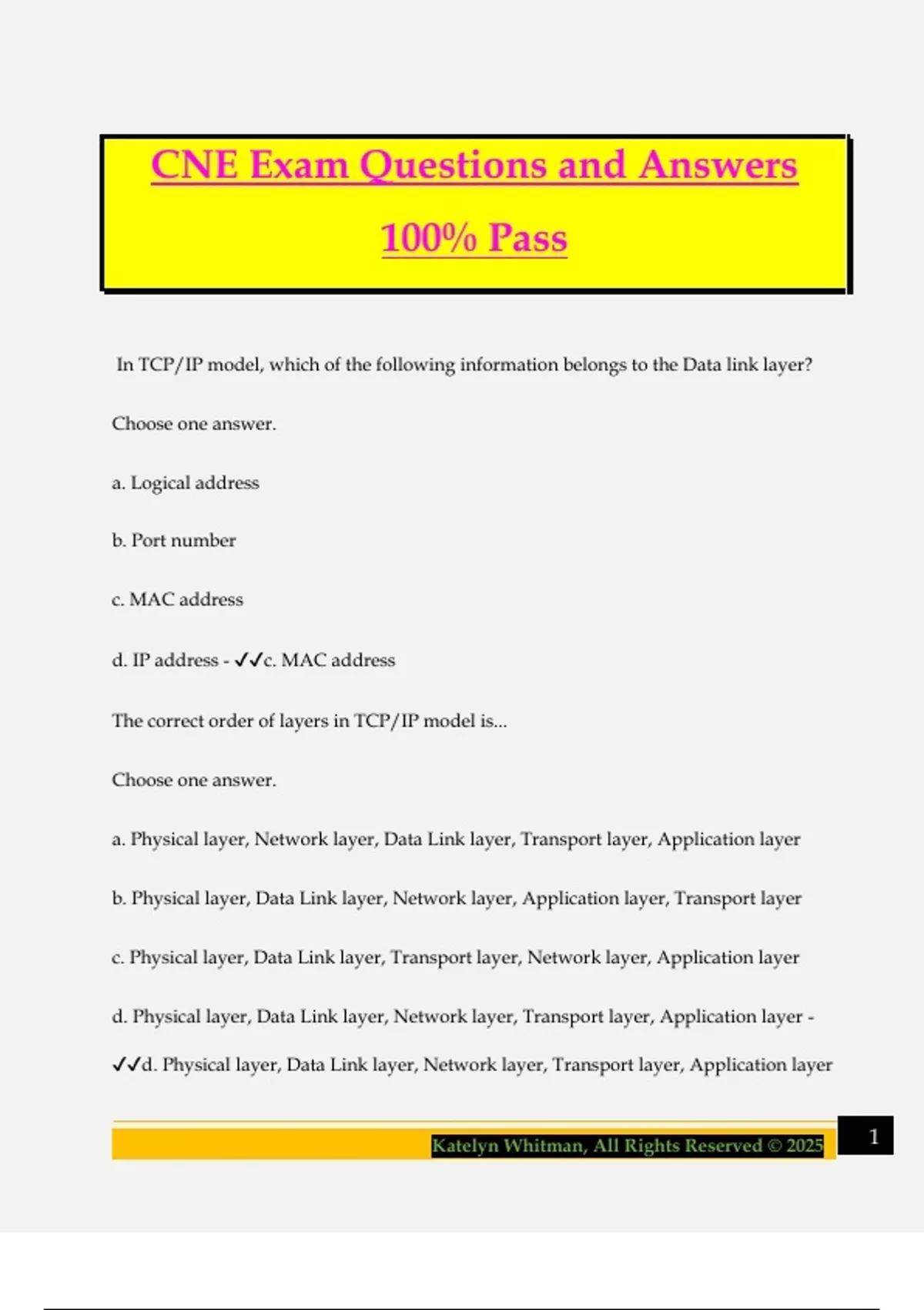 ✔✔d. Physical layer, Data Link layer, Network layer, Transport layer, Application layer