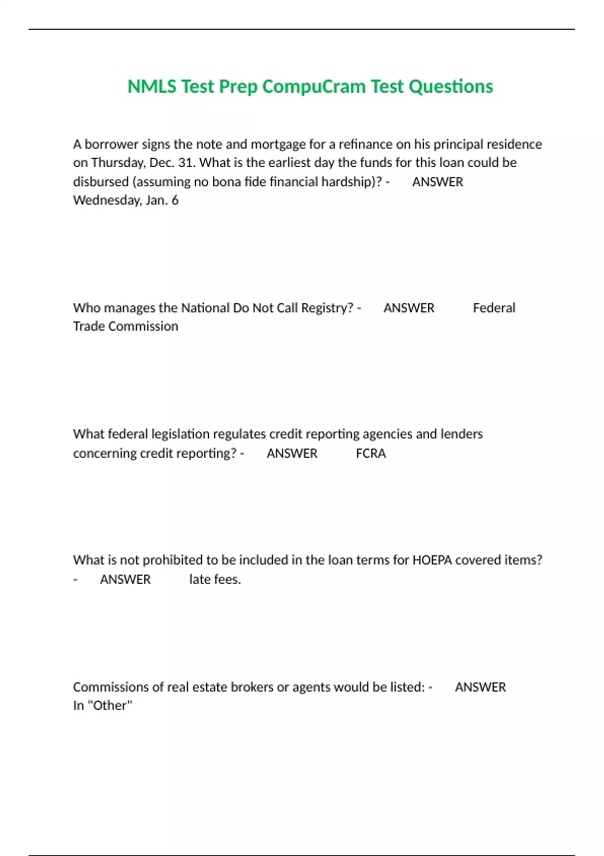 NMLS Test Prep CompuCram Test Questions NMLS Test Prep CompuCram Test Questions