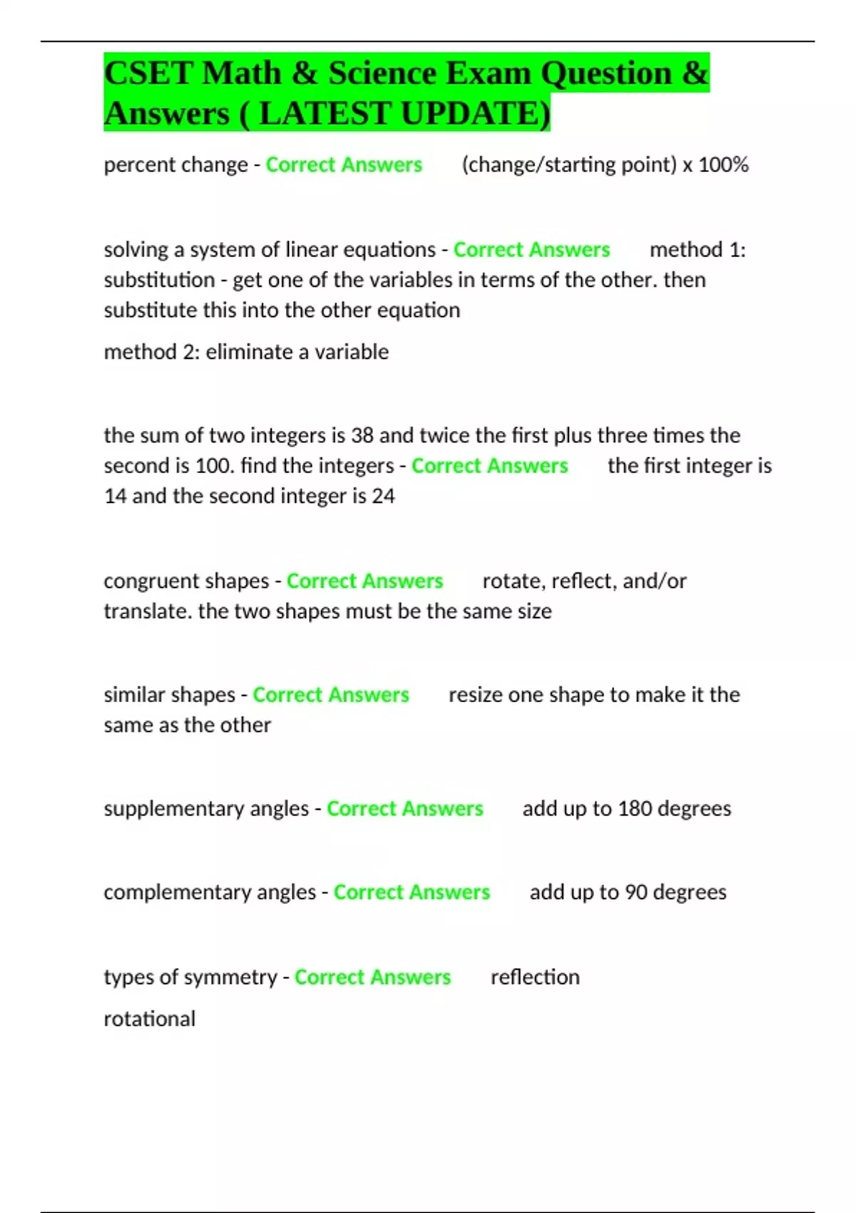 congruent shapes - Correct Answers ✅rotate, reflect, and/or