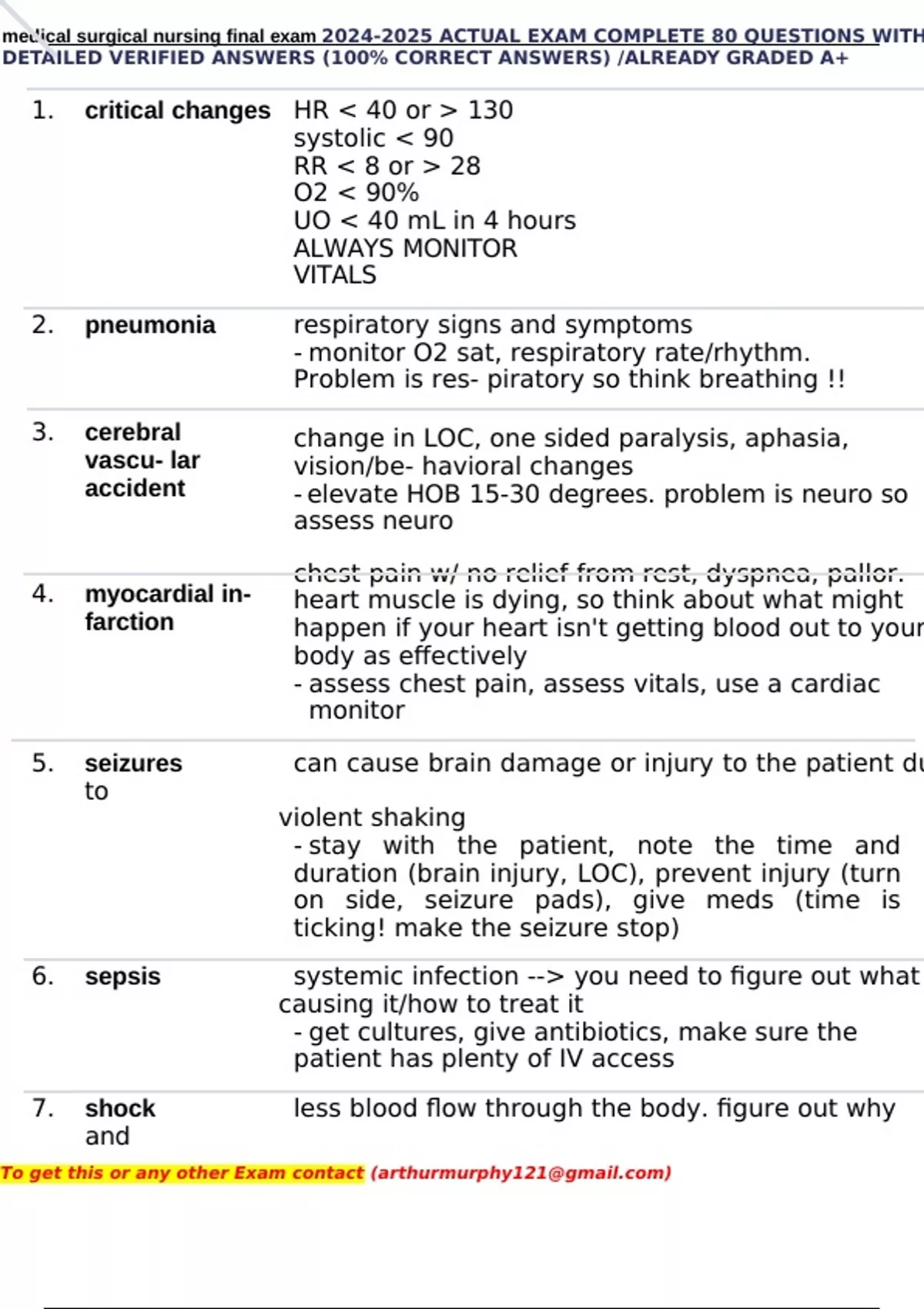 ,medical surgical nursing final exam 2024-2025 ACTUAL EXAM COMPLETE 80 QUESTIONS WITH