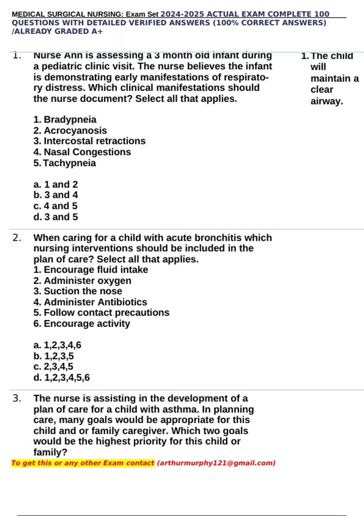 MEDICAL SURGICAL NURSING: Exam Set ACTUAL EXAM COMPLETE 100 QUESTIONS WITH DETAILED VERIFIED ANSWERS (100% CORRECT ANSWERS) /ALREADY GRADED A+