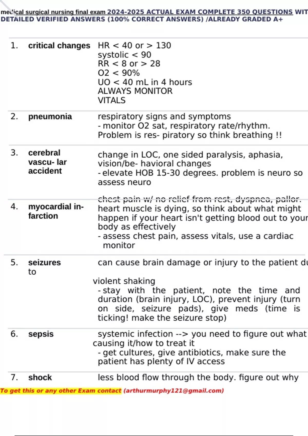 ,medical surgical nursing final exam 2024-2025 ACTUAL EXAM COMPLETE 350 QUESTIONS WIT
