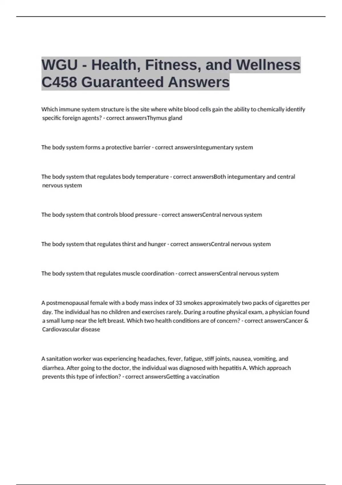 WGU - Health, Fitness, And Wellness C458 Guarantee