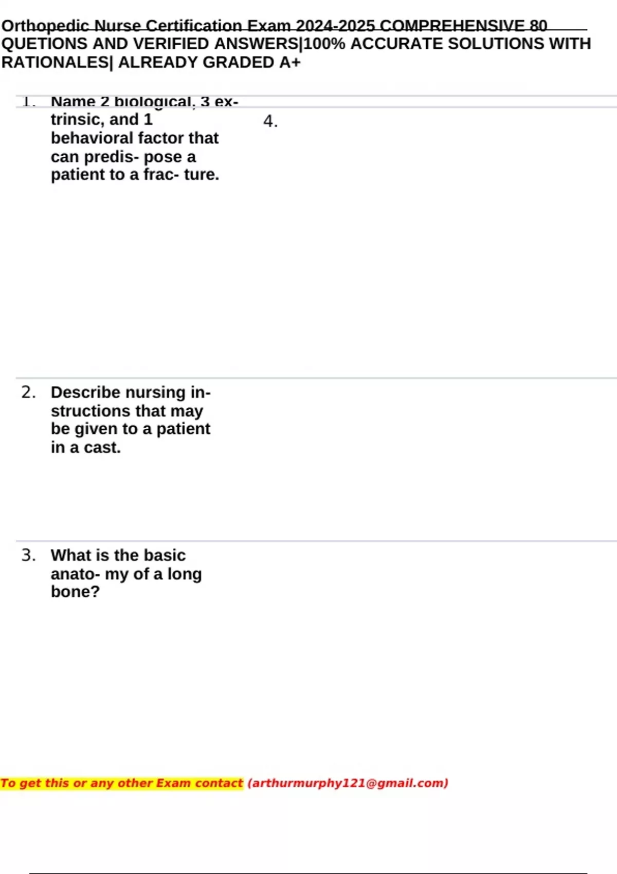 Orthopedic Nurse Certification Exam 2024-2025 COMPREHENSIVE 80