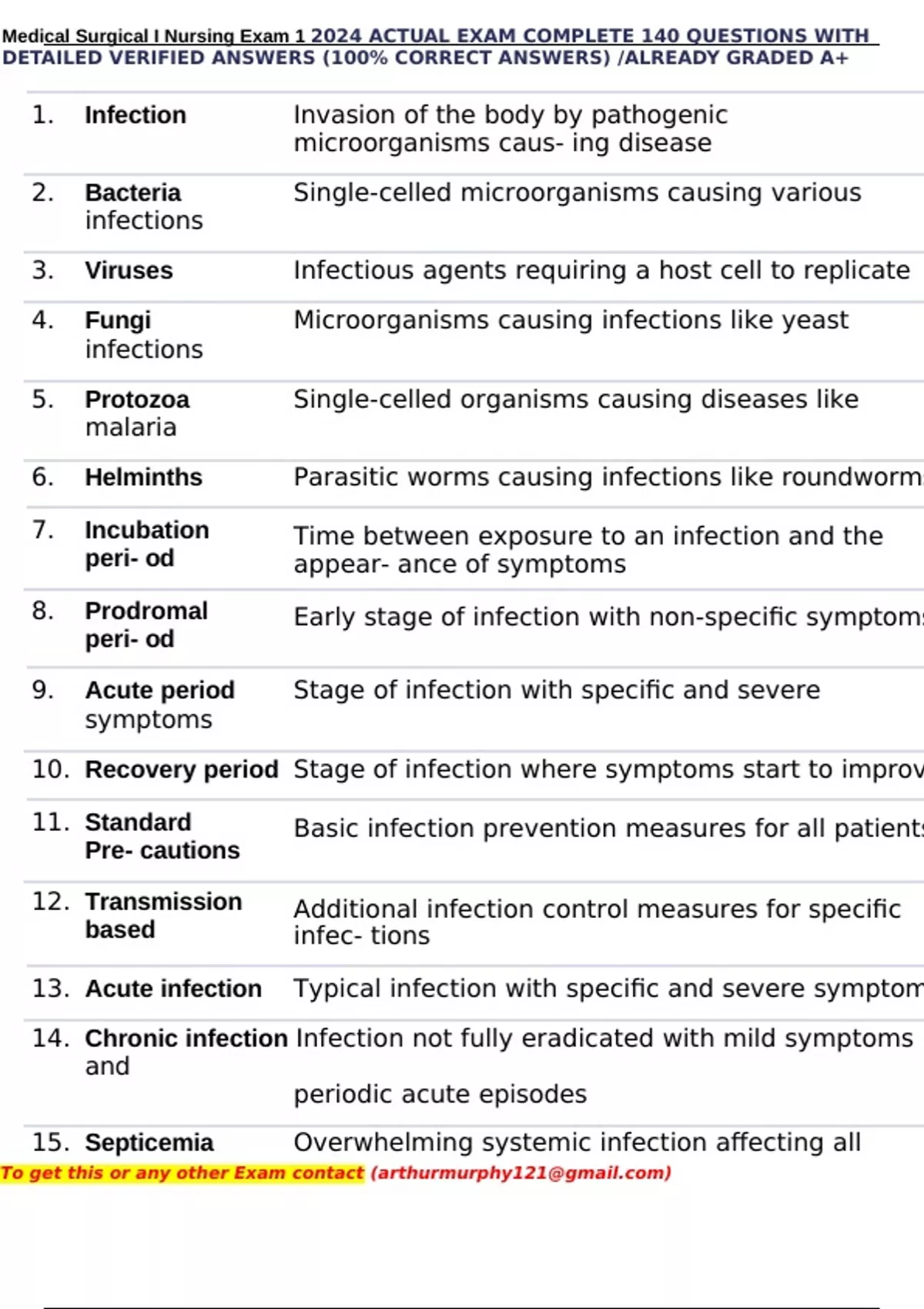 Medical Surgical I Nursing Exam 1 2024 ACTUAL EXAM COMPLETE 140 QUESTIONS WITH