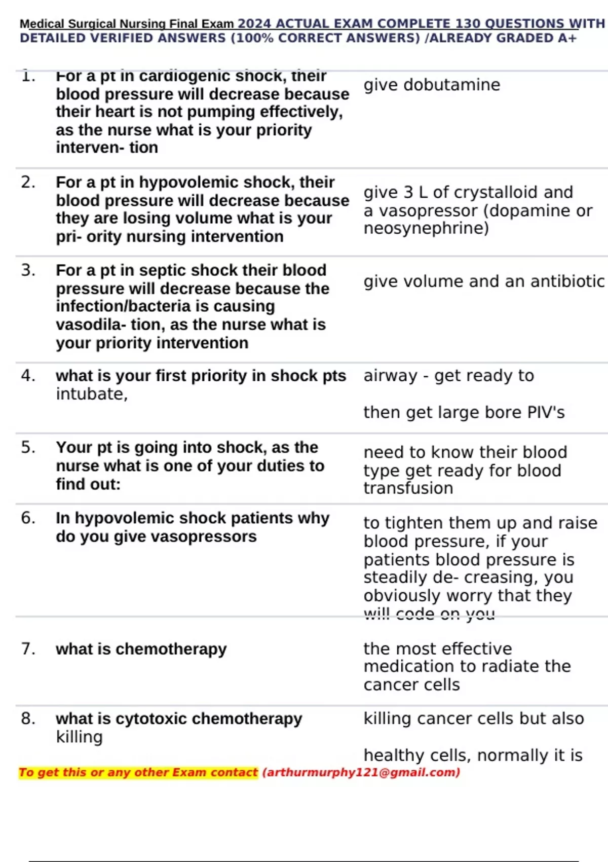 ,Medical Surgical Nursing Final Exam 2024 ACTUAL EXAM COMPLETE 130 QUESTIONS WITH