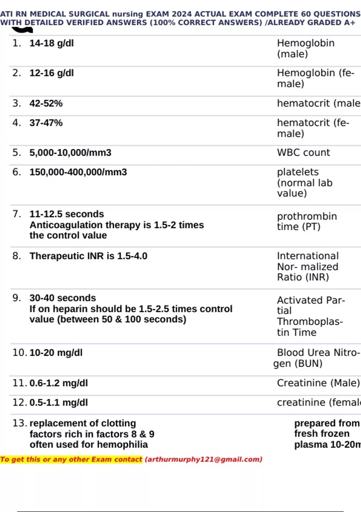 1. 14-18 g/dl Hemoglobin