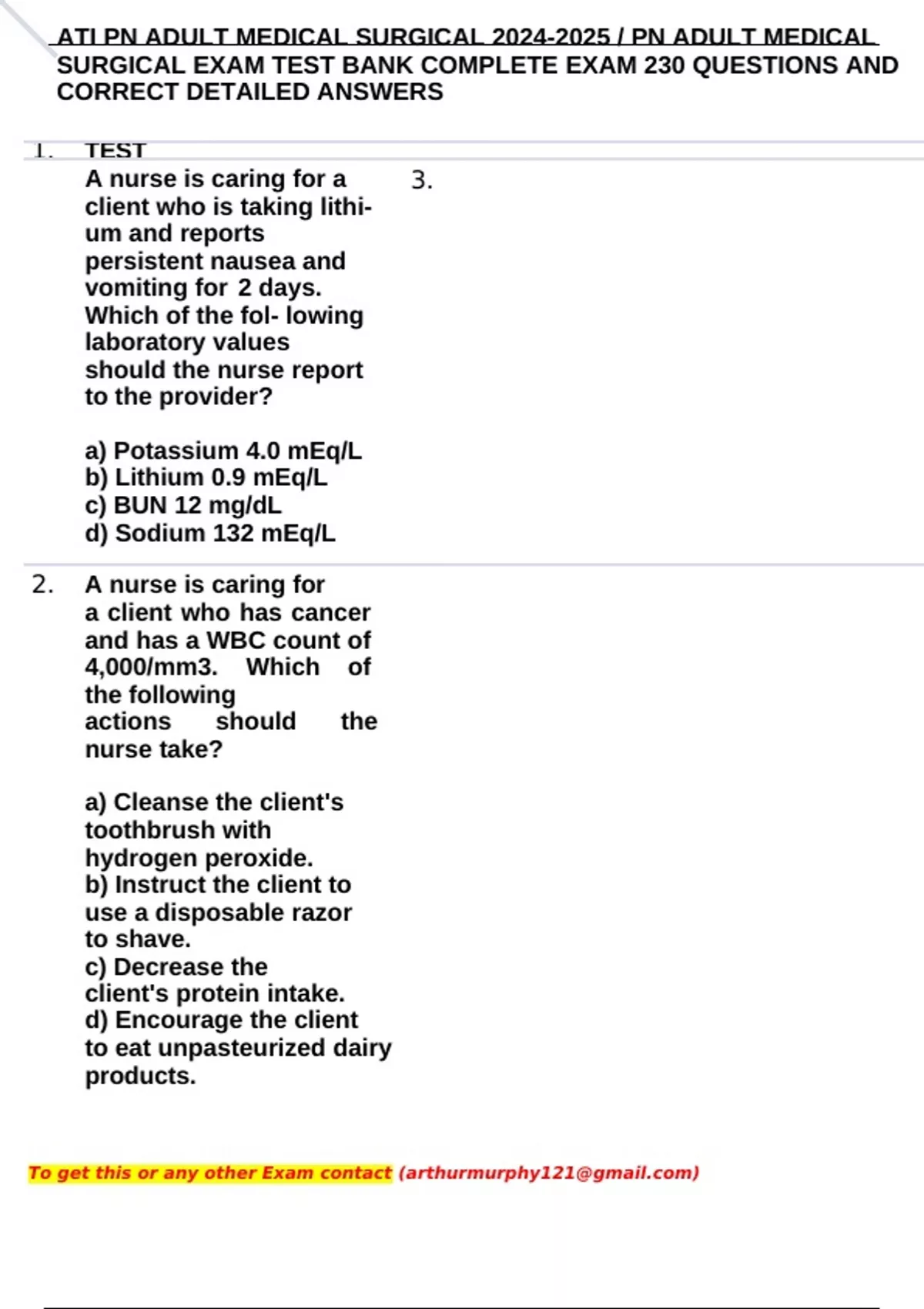 ATI PN ADULT MEDICAL SURGICAL / PN ADULT MEDICAL SURGICAL EXAM TEST BANK COMPLETE EXAM 230 QUESTIONS AND CORRECT DETAILED ANSWERS