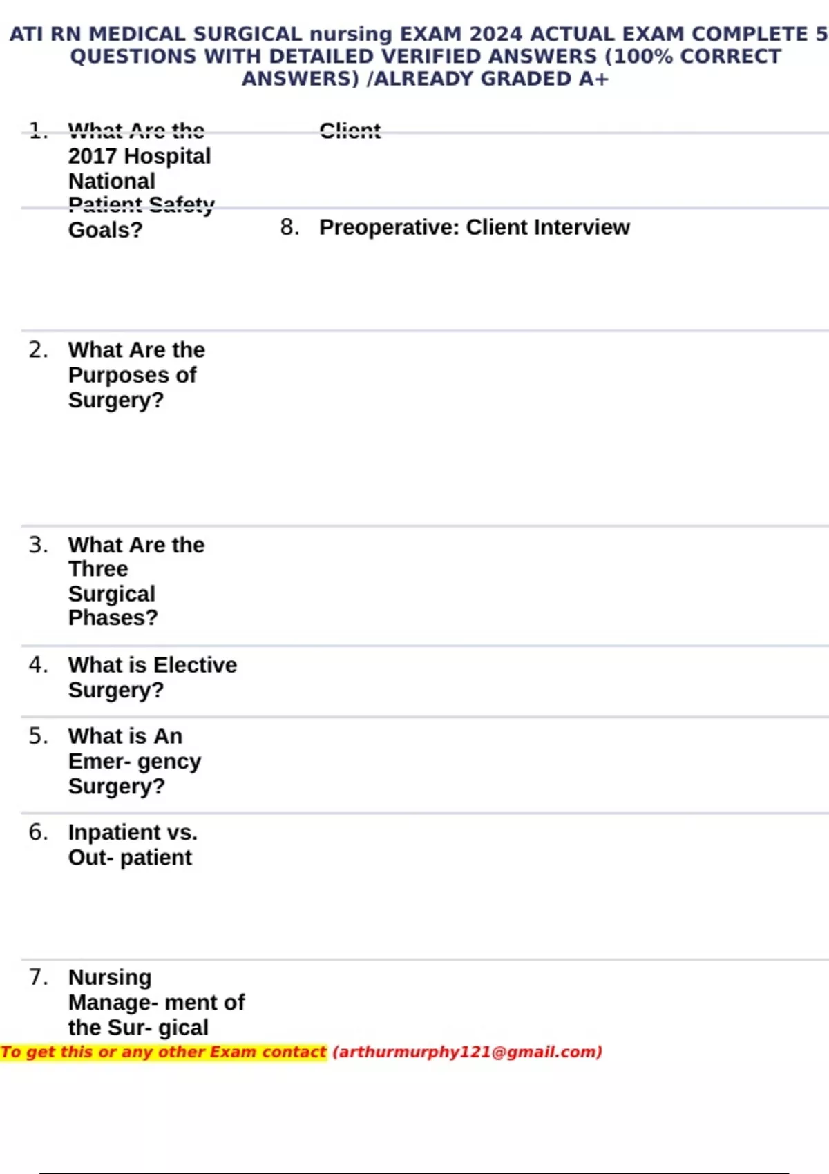 , ATI RN MEDICAL SURGICAL nursing EXAM 2024 ACTUAL EXAM COMPLETE 5