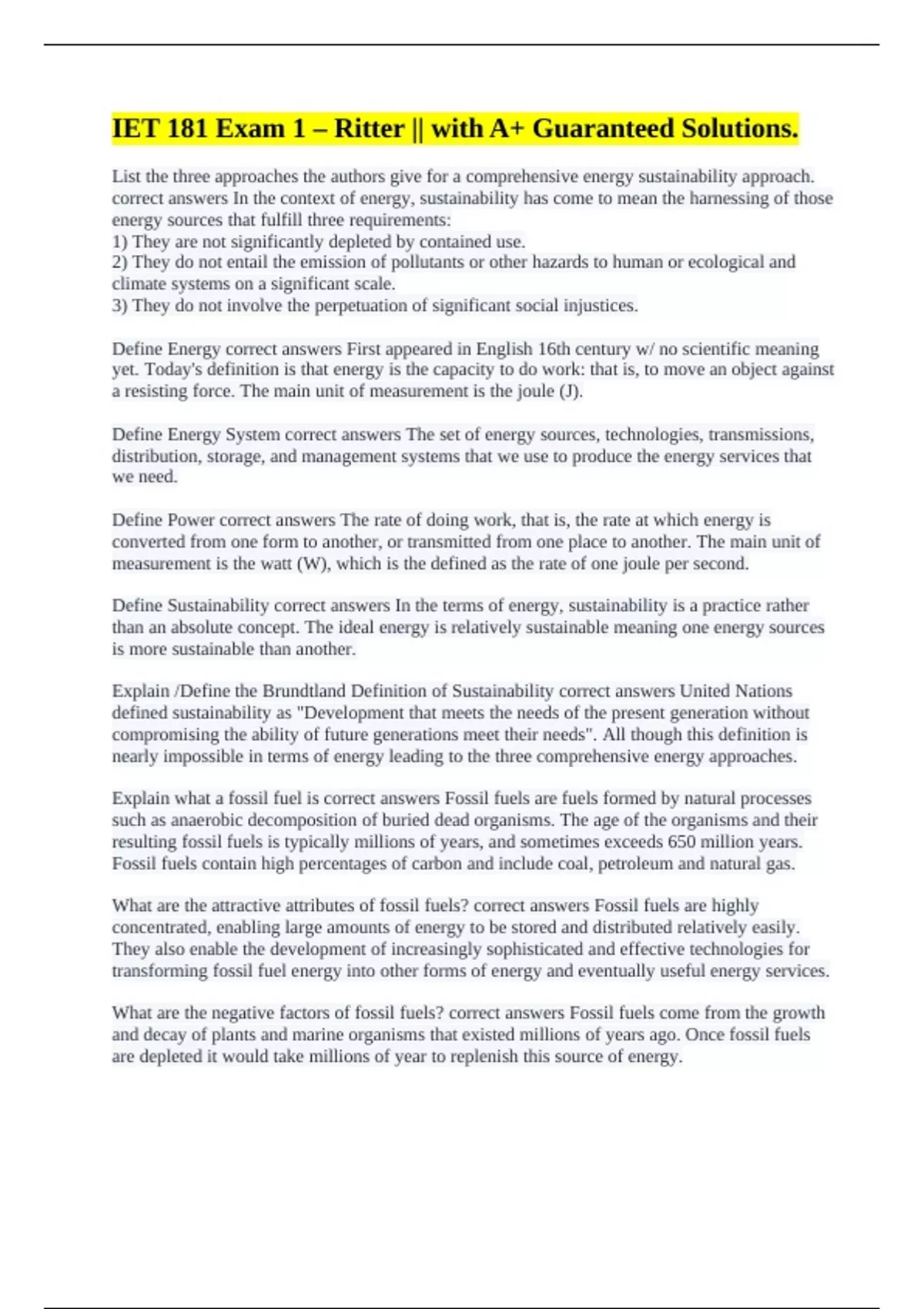 IET 181 Exam 1 – Ritter || with A+ Guaranteed Solutions.