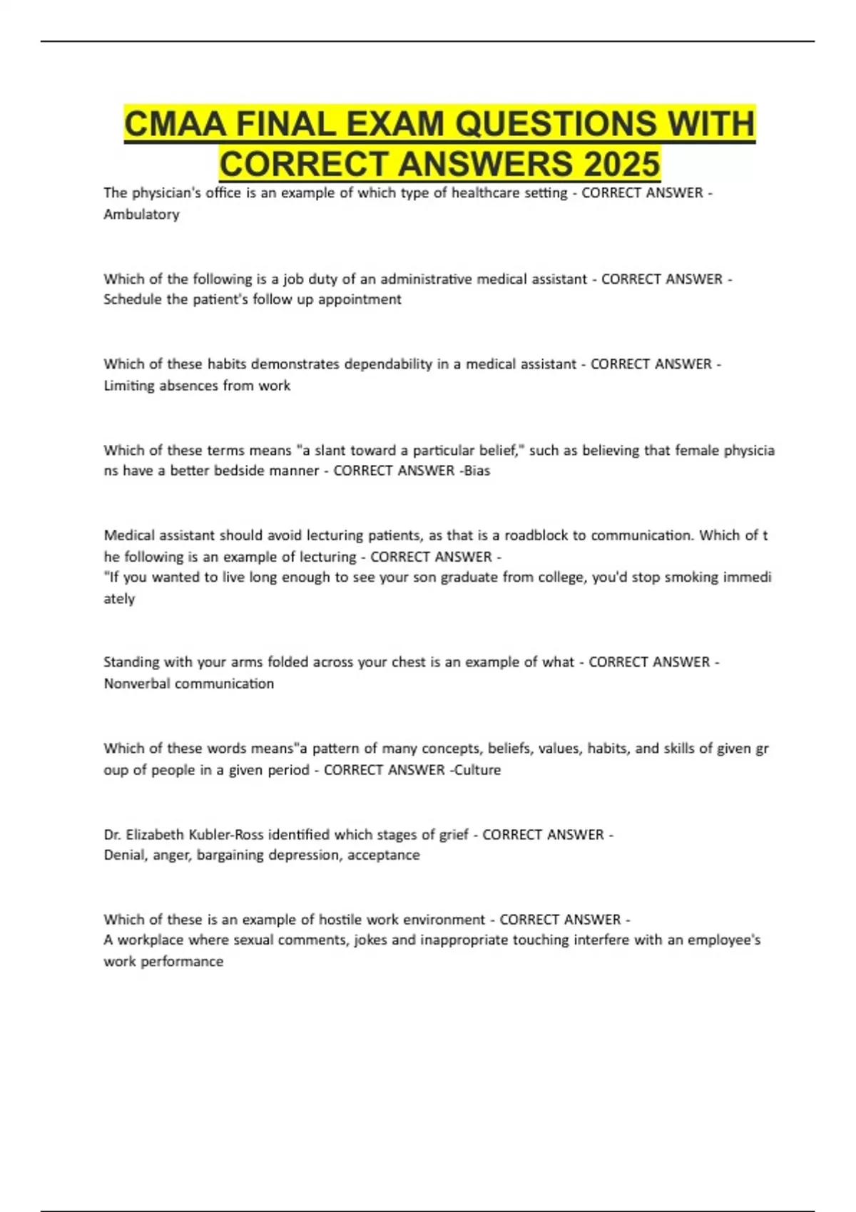 CMAA FINAL EXAM QUESTIONS WITH CORRECT ANSWERS 2025