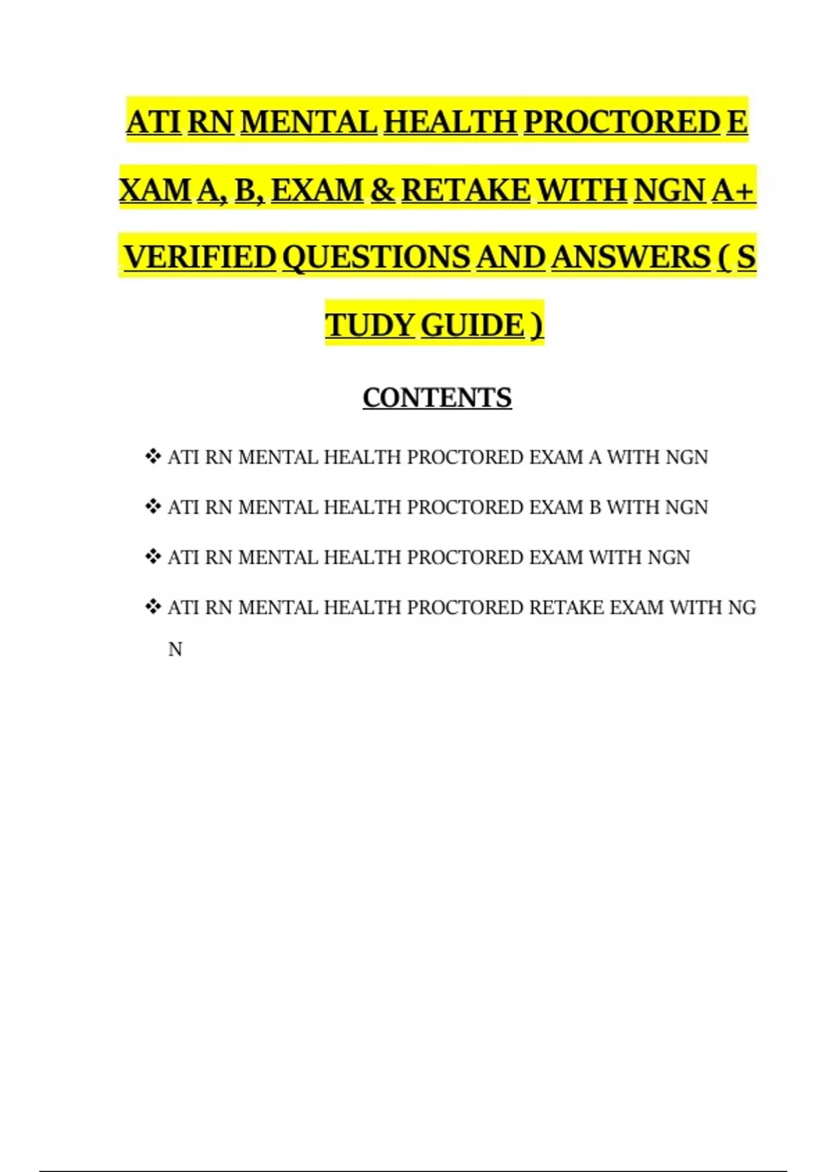 ATI RN MENTAL HEALTH PROCTORED RETAKE EXAM WITH NG
