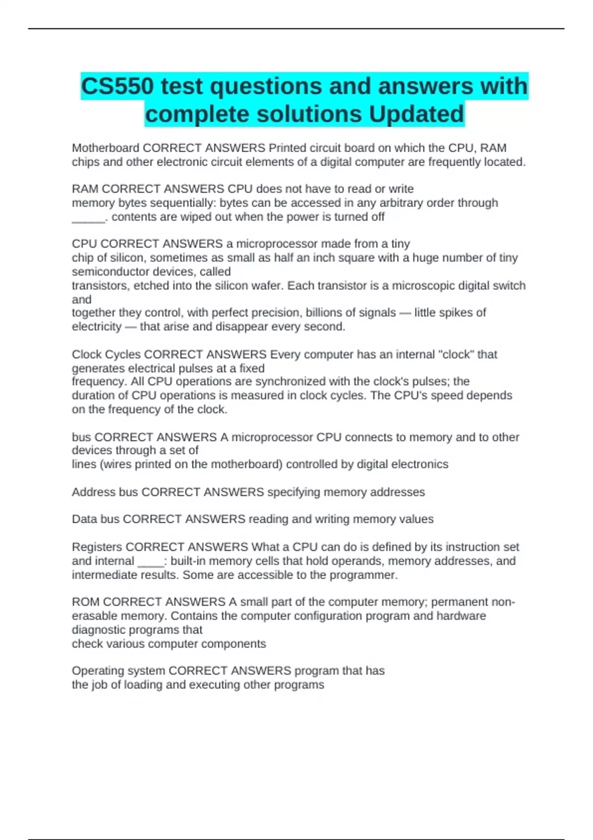 bus CORRECT ANSWERS A microprocessor CPU connects to memory and to other