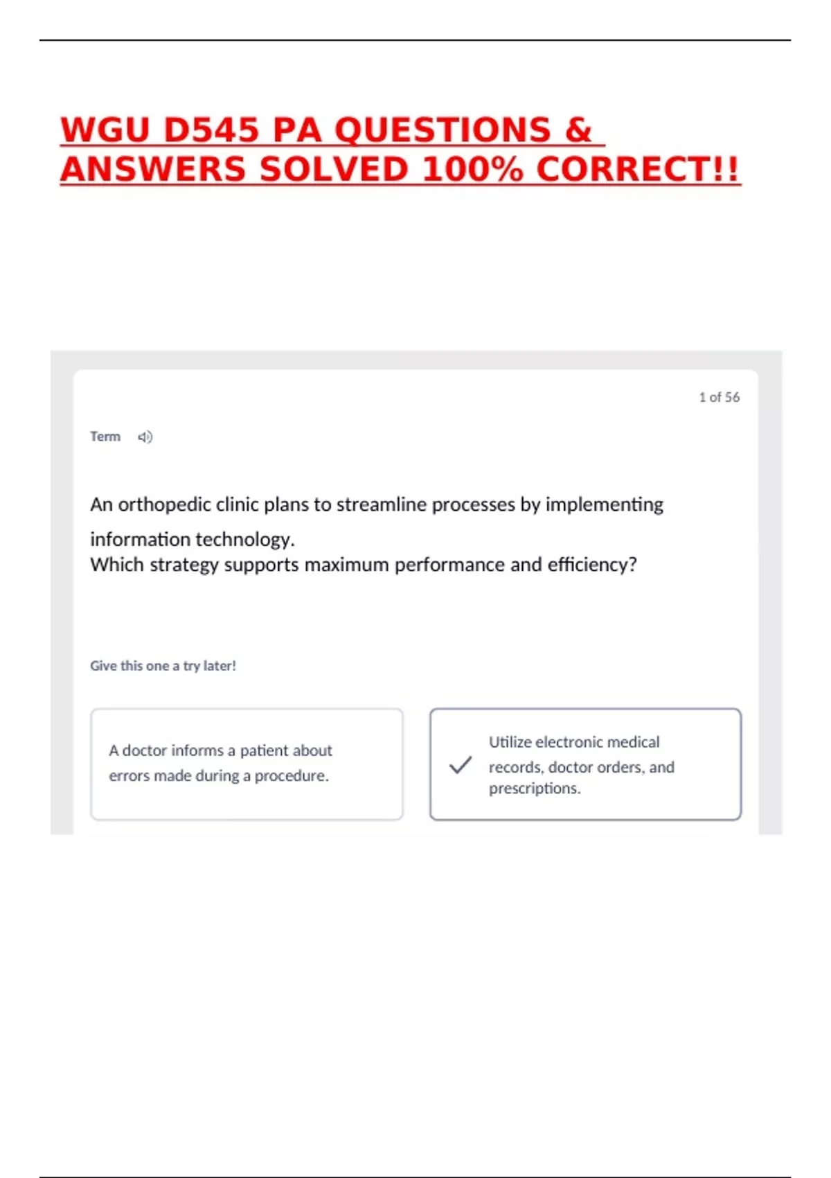 WGU D545 PA QUESTIONS & ANSWERS SOLVED 100% CORRECT!!