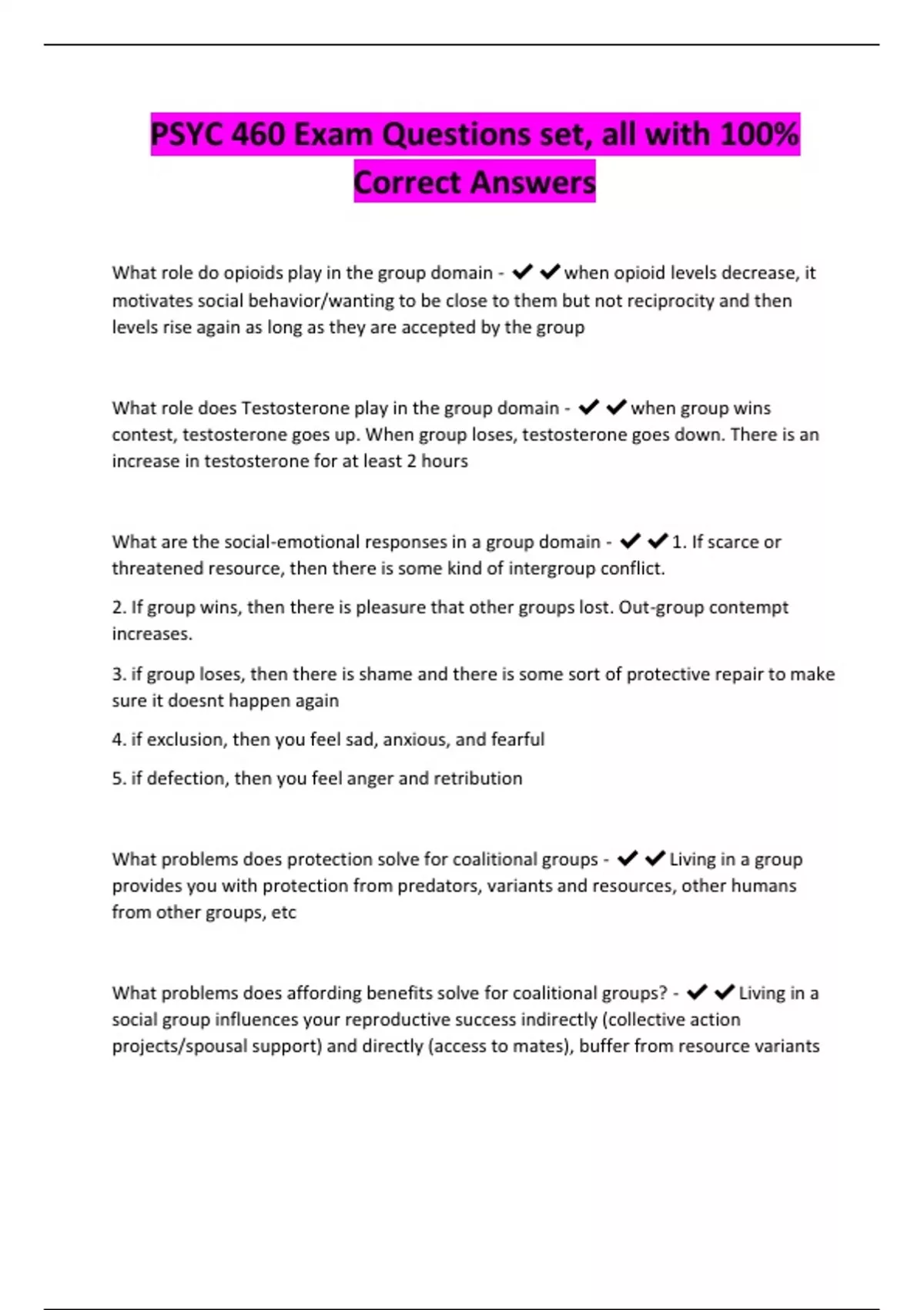 PSYC 460 Exam Questions set, all with 100%