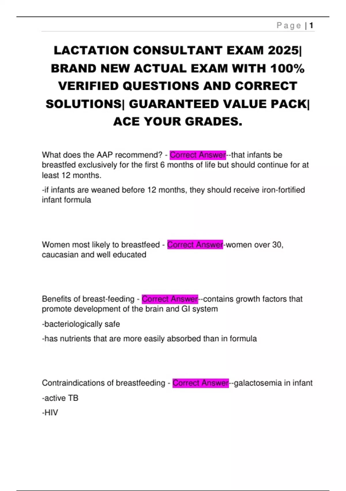 LACTATION CONSULTANT EXAM 2025|