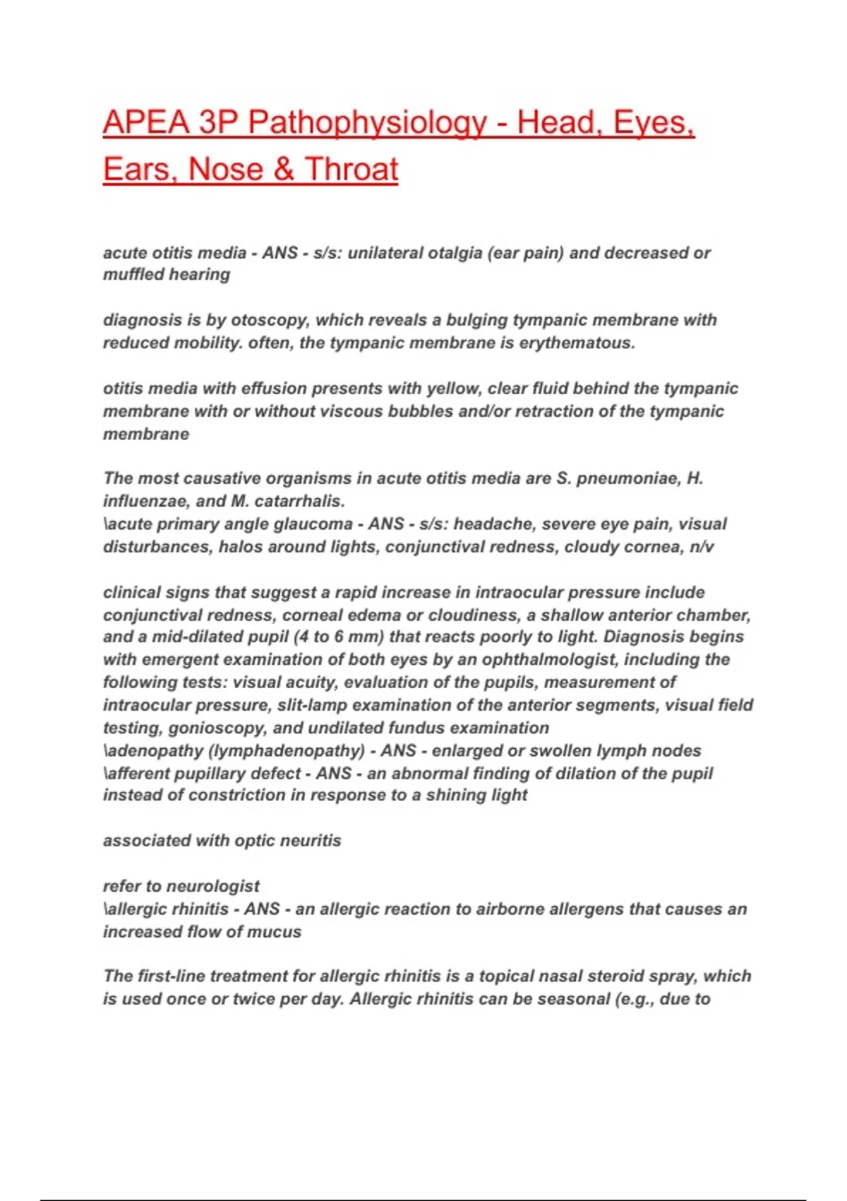 APEA 3P Pathophysiology - Head, Eyes,