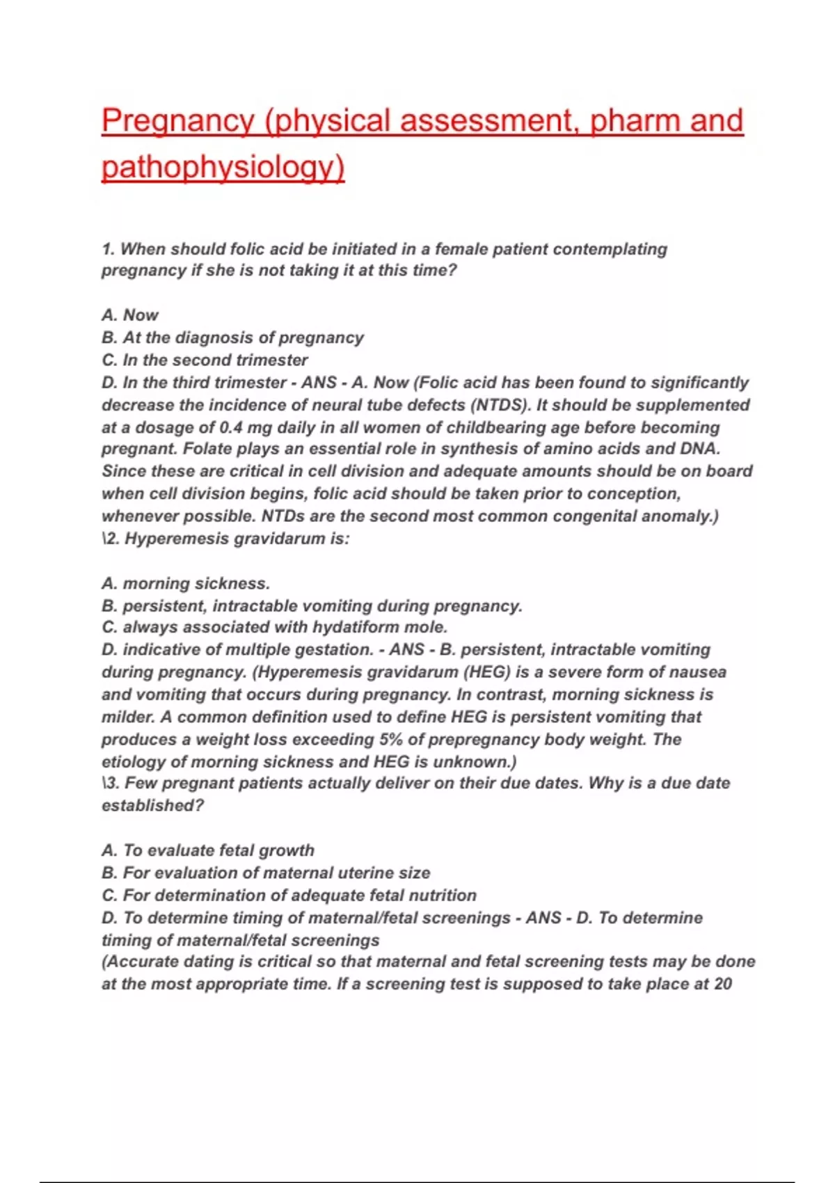 D. In the third trimester - ANS - A. Now (Folic acid has been found to significantly