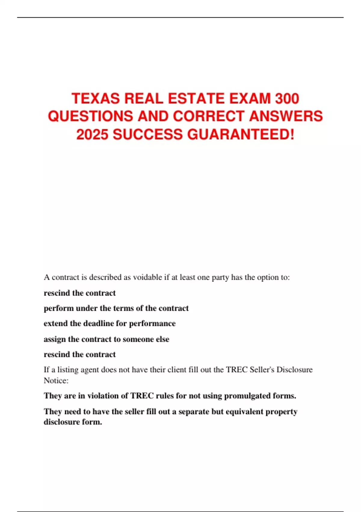 TEXAS REAL ESTATE EXAM 300