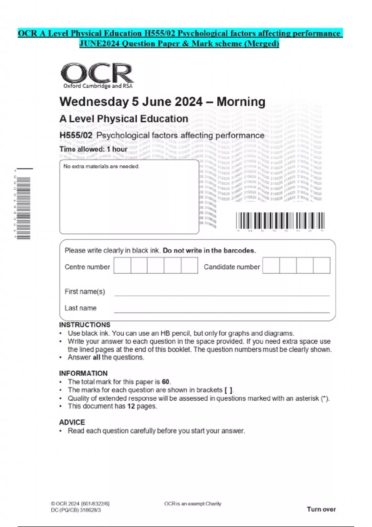OCR A Level Physical Education H555/03 Socio-cultural issues in physical activity and sport Question Paper & Mark scheme (Merged)