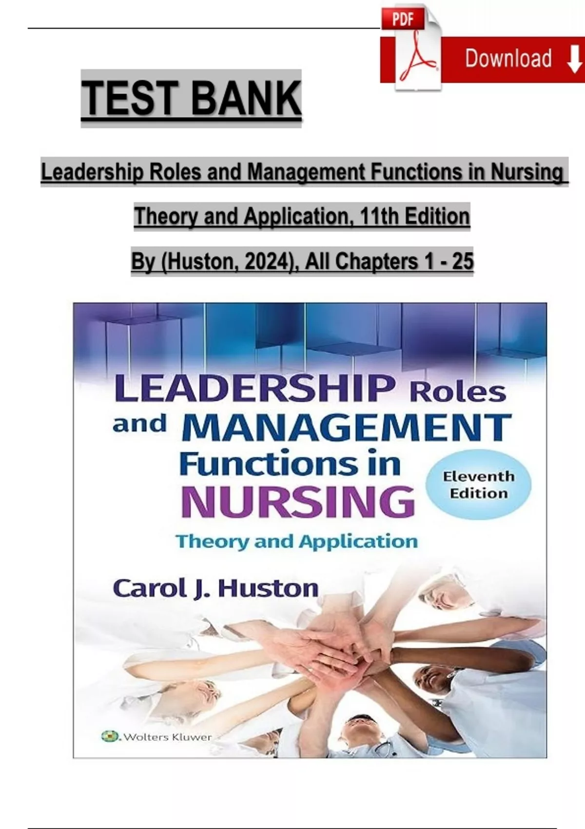 TEST BANK Leadership Roles and Management Functions in Nursing Theory and Application, 11th Edition By (Huston, 2024), All Chapters 1 - 25 TEST BANK Leadership Roles and Management Functions in Nursing Theory and Application, 11th Edition By (Huston, 2024), All Chapters 1 - 25 TEST BANK Leadership Roles and Management Functions in Nursing Theory and Application, 11th Edition By (Huston, 2024), All Chapters 1 - 25