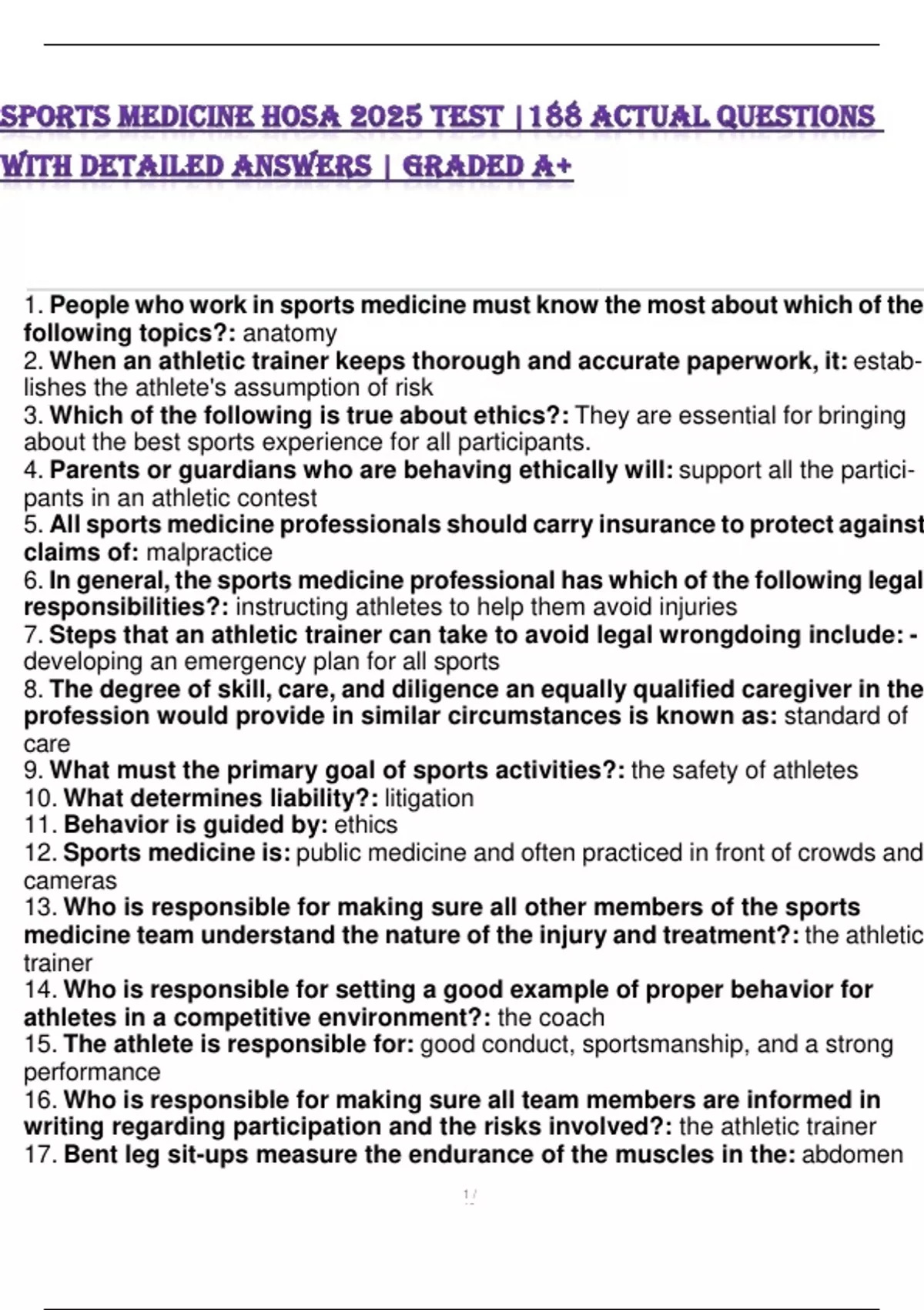 2. When an athletic trainer keeps thorough and accurate paperwork, it: estab-